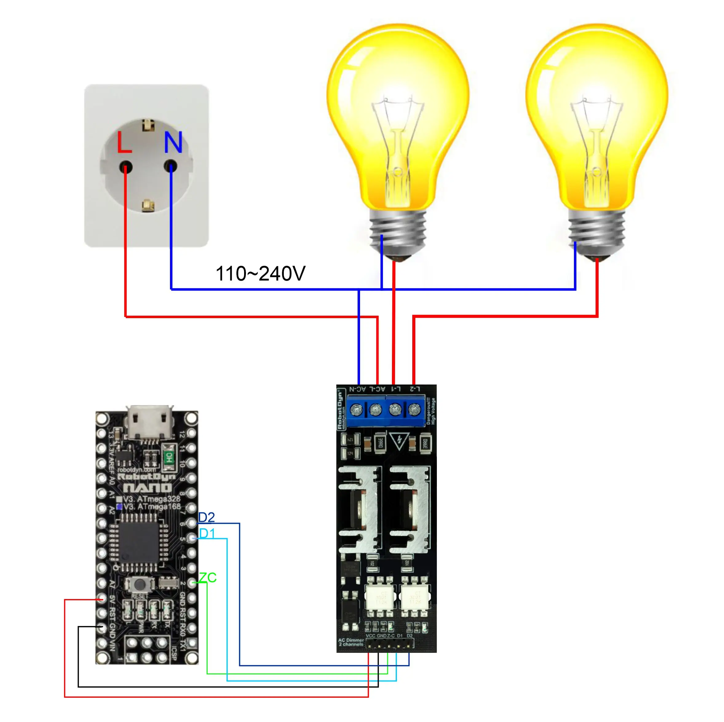 Светильник переменного тока диммерный модуль, 2 канала, 3,3 V5 V логики, AC 5060 hz, 220 V110 V