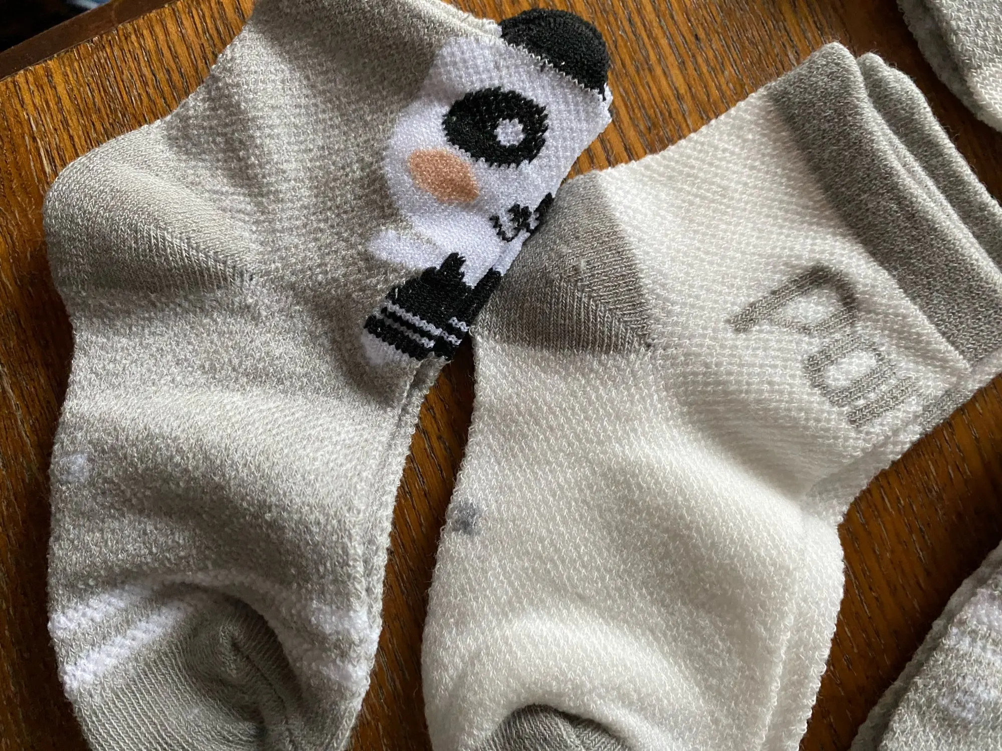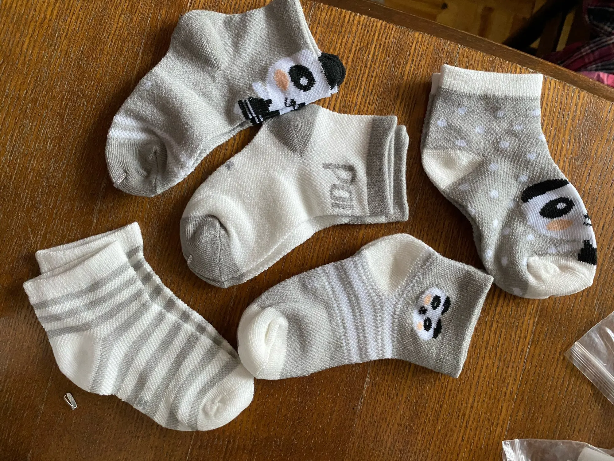 не понимаю хвалебных отзывов. носки маленькие, узкие, плохо тянутся, из них нитки и резинки вылезают, сразу же покрылись серыми катышками, после стирки сели, резинка тугая. и материал с синтетикой, большой %. ну куда детям на лето такое?! на фото носки после 2 часов на прогулке и 1 стирки.