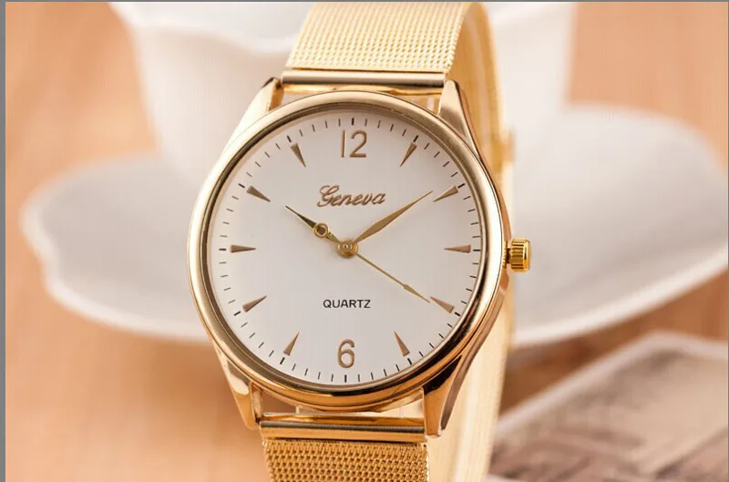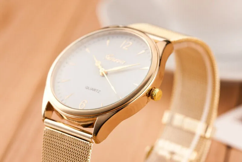 Susenstone женские классические золотые кварцевые часы Geneva, наручные часы из нержавеющей стали, повседневный браслет, наручные часы в подарок, Reloj femenino @ 4