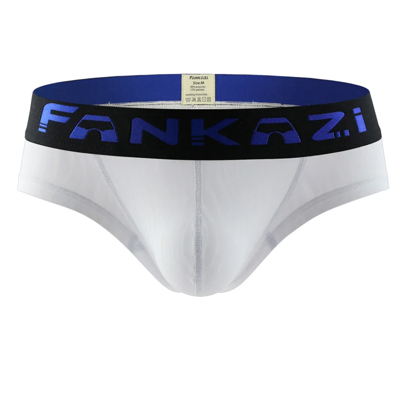Мужские трусы брифы с водным узором, синие шелковые трусы слипы, сексуальное нижнее белье для мужчин, внутренняя одежда, гей-трусы
