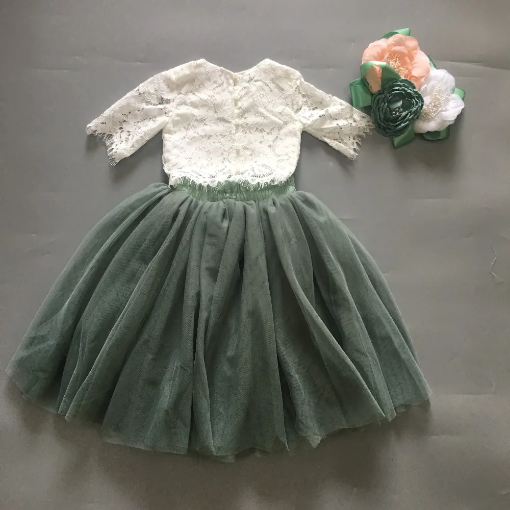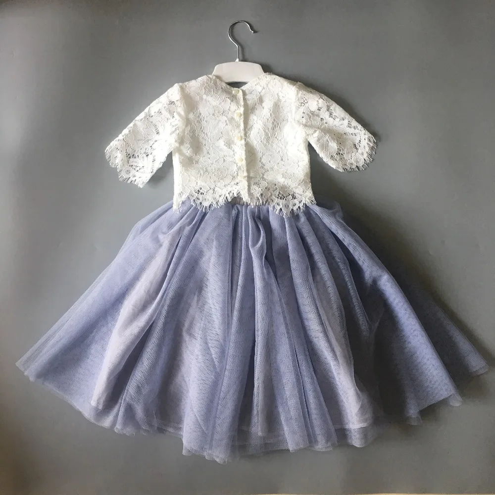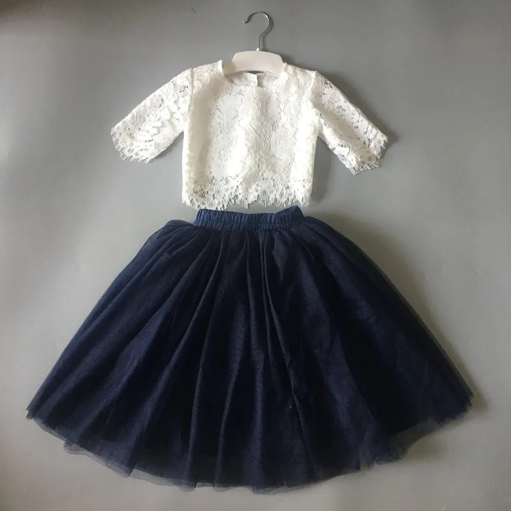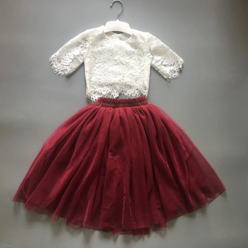 Детский кружевной костюм принцессы, элегантный комплект одежды для девочек, топ и длинная юбка, модный вечерний костюм, разные цвета