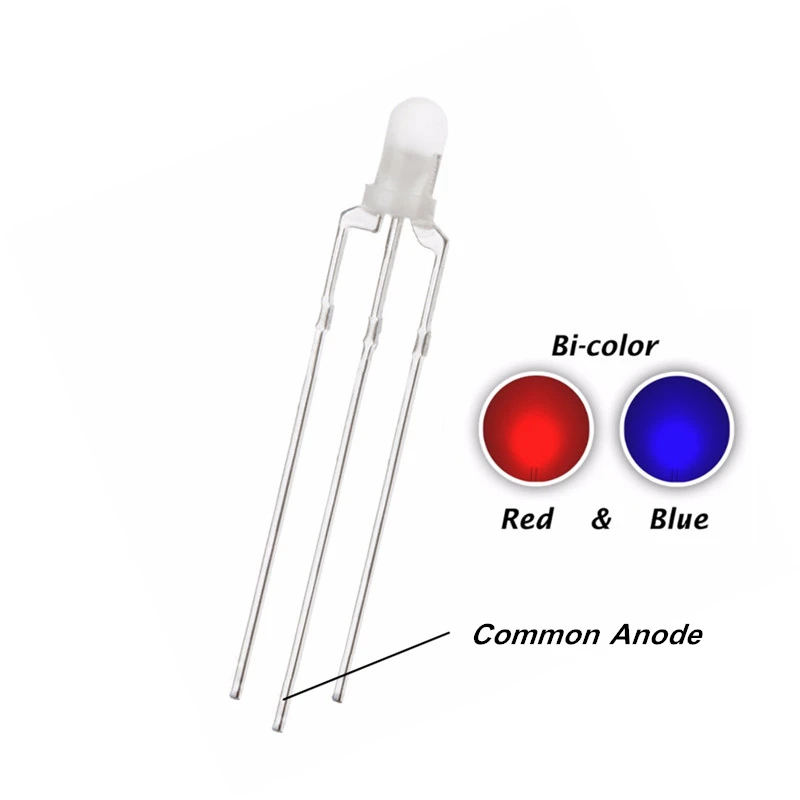 100 шт, толщина 3 мм, красный и синий матовый светодиодный общий анодный свет с круглым носком Би Цвет 3Pin двойной Цвет светового бисера