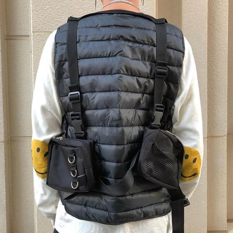 Тактический функциональный жилет для мужчин и женщин, уличная одежда в стиле хип-хоп, нагрудная Сумочка унисекс из ткани Оксфорд, с двумя карманами, забавные поясные мешки, 136