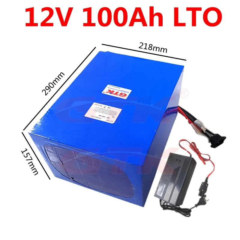 Литиевый титанит GTK 12V 100AH аккумулятор лто BMS 100A для велосипеда, скутера, велосипеда, вилочного типа, промышленное оборудование + зарядное устройство 10A