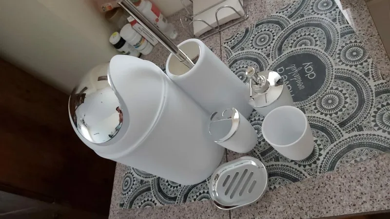 Написала продавцу, что к ведру не подошла крышка и никакого результата. Фото отправляла. В целом набор очень симпатичный, те вещи которые в ванной комнате, смотрятся очень красиво. Доставка быстрая.