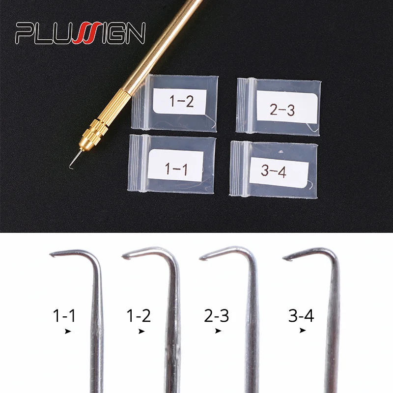 Профессиональные вентиляционные иглы Plusssign 1-1, 1-2, 2-3, 3-4, четыре размера с держателем для одной иглы, крючок для ремонта париков