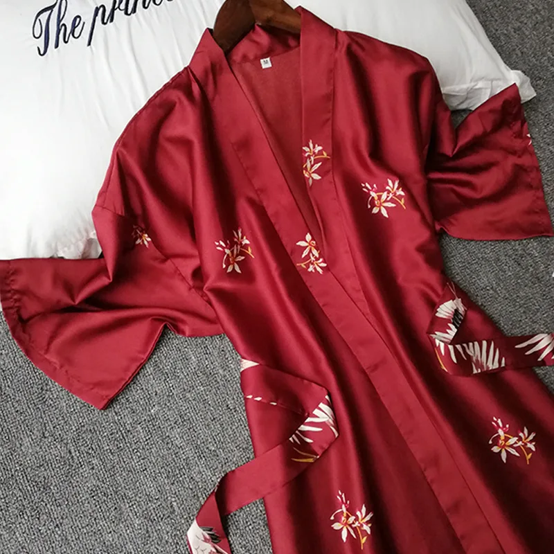 Шелковая ночная рубашка для женщин, платье для подружки невесты на свадьбу, ночная рубашка с вышивкой, свободный банный костюм большого размера, длинный халат
