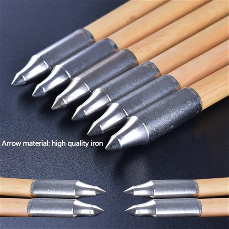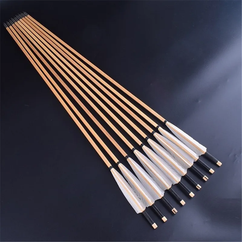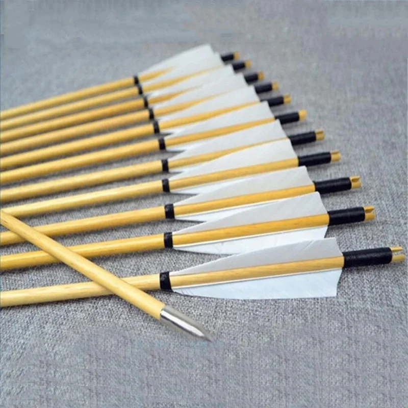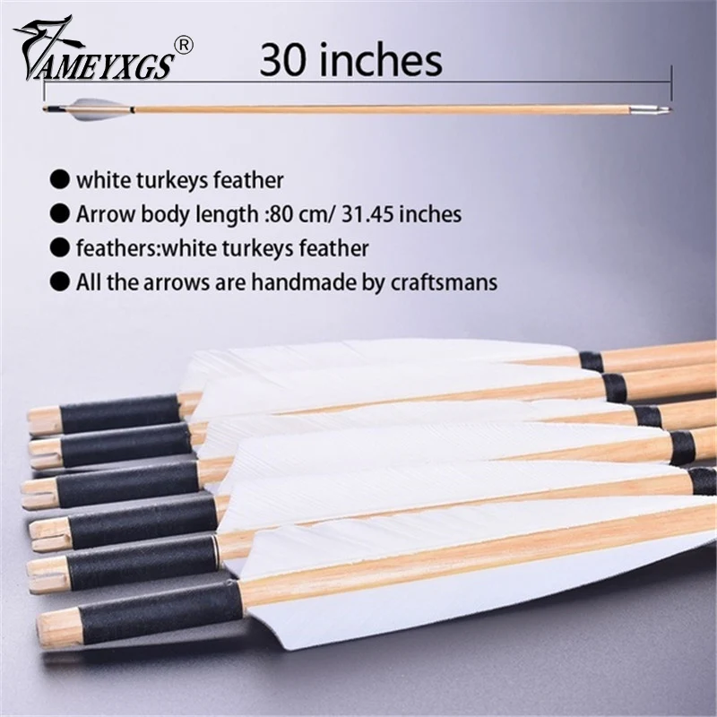 Деревянные стрелы ручной работы 30 дюймов (80 см) с белым перьем индейки для лука дальнего действия 25-50 фунтов, для охоты, стрельбы из лука, 12 шт.