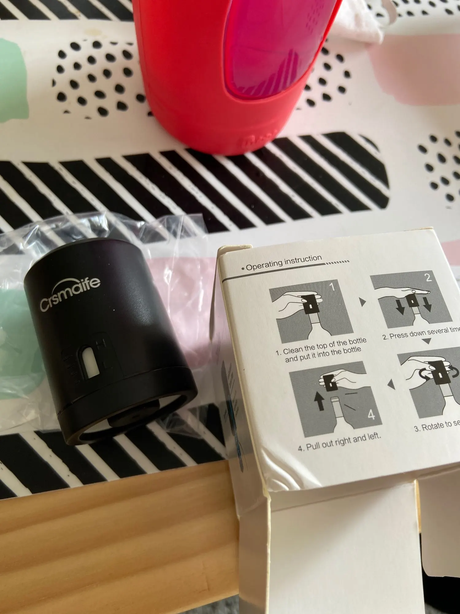 Классная вещь! Откачивает воздух из бутылки, позволяя дольше сохранить вино, есть окошко с датой когда произошла закупорка. Сделано очень качественно