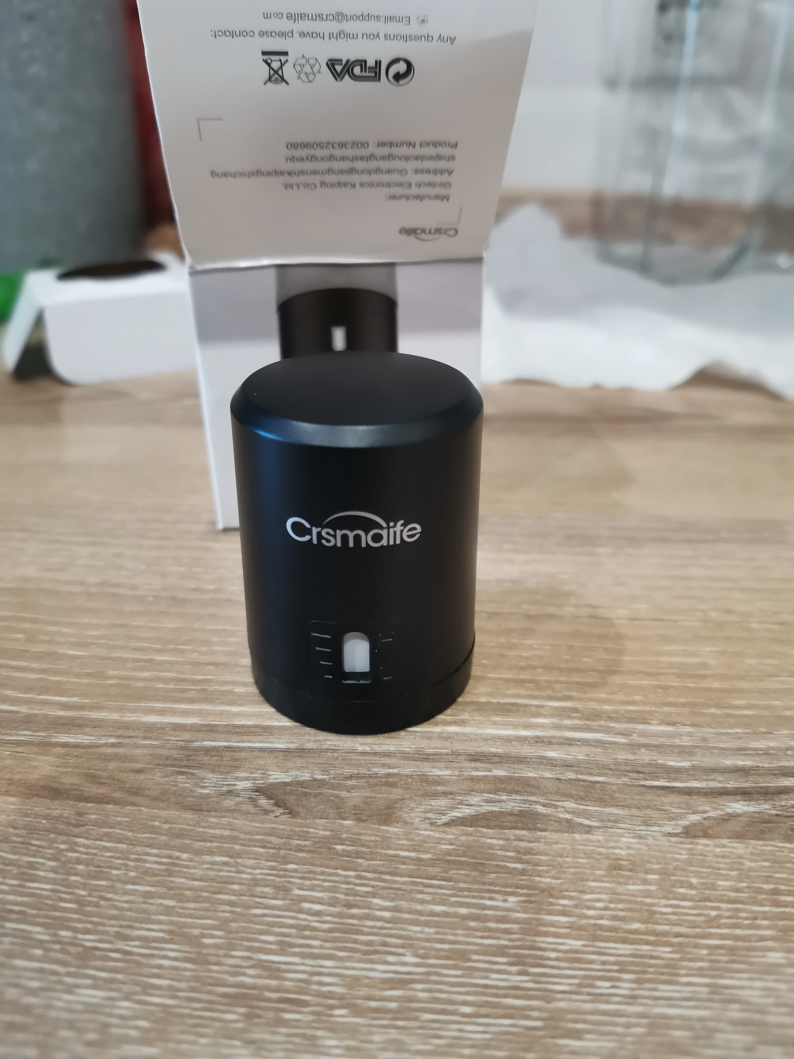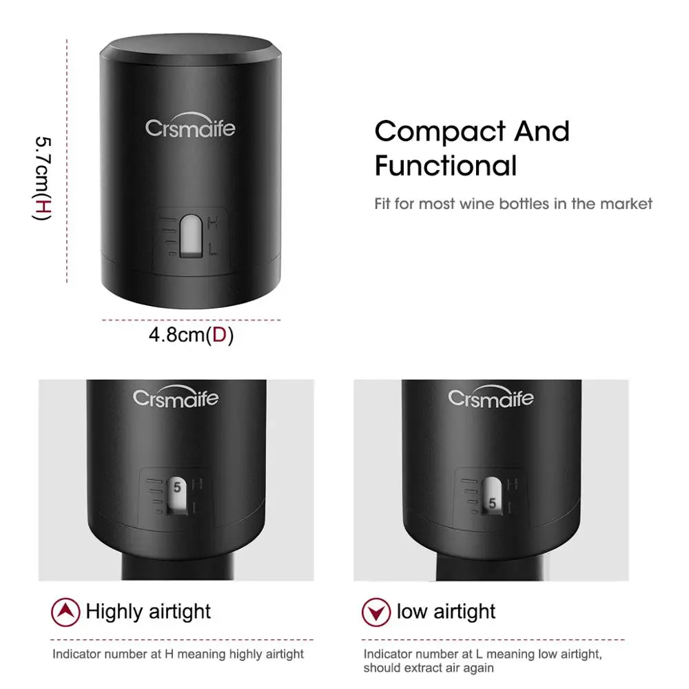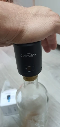 Интересная вещь. С установкой даты закупоривания. Скорее декоративная и необязательная функция. Но воздух из бутылки выкачивает.