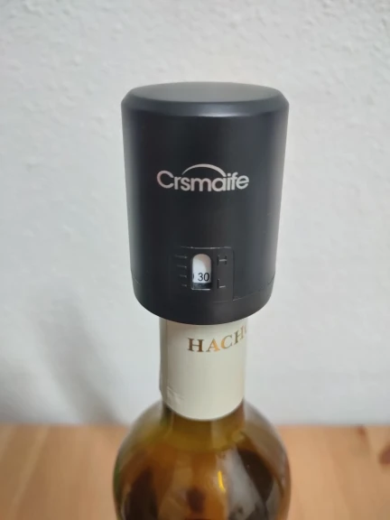 Хороший супер. Это того стоит. Если вы включите его, вы можете указать день открытия бутылки вина. Очень хорошее качество. Помните, что через несколько дней вам придется перезаряжать и опускать бутылку кислорода, так как вы немного потеряете и заметите, устройство поднимается, а дата не выглядит. Помогли ли мне мой комментарий? Если да, дайте это да, спасибо!