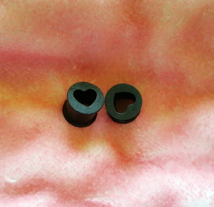 Я немного разочарован. На фотографиях казалось, что они примерно размером со среднюю мочку уха по толщине (как и большинство пробок), но, к сожалению, они очень длинные и выделяются как на передней, так и на задней части мочки уха :( кроме этого качество кажется прекрасным, и сердце видно.