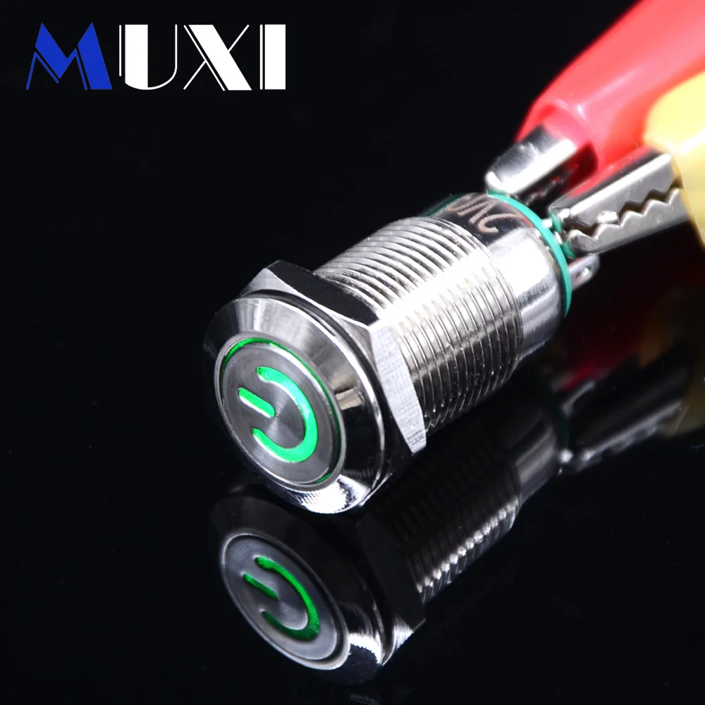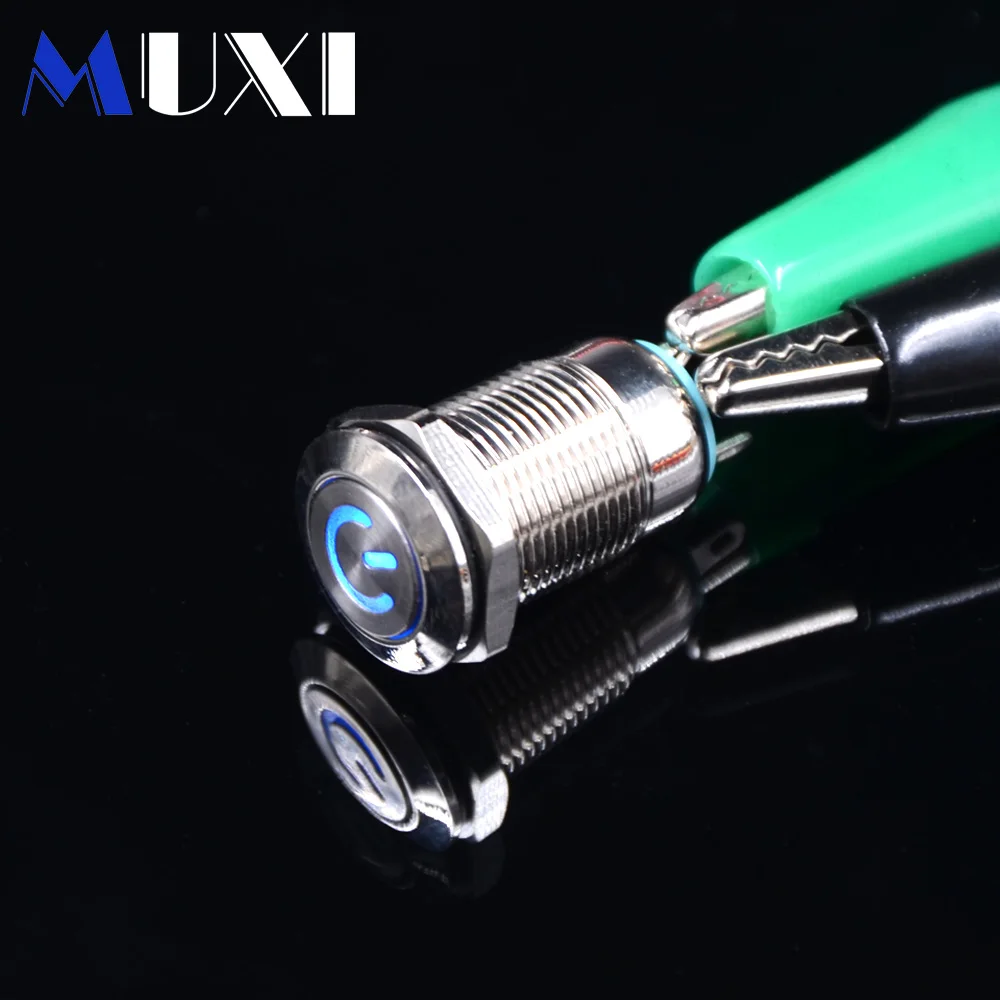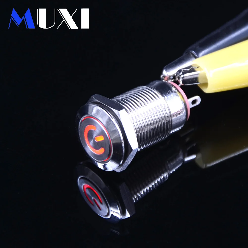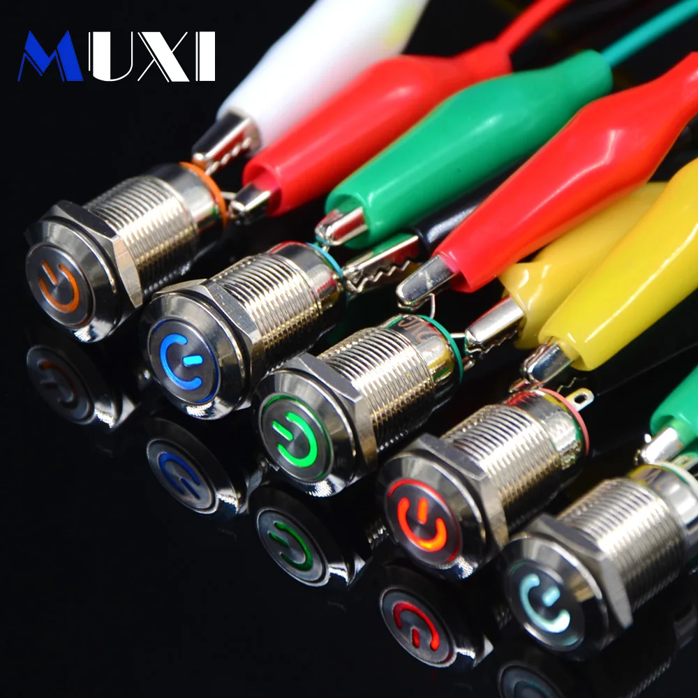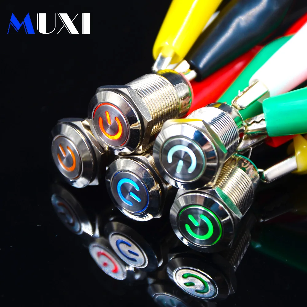 Водонепроницаемый металлический кнопочный переключатель из нержавеющей стали с самоблокировкой, 12 мм, красный, синий, зеленый, желтый, белый, 3 в, 5 В, 6 в, 12 В, 24 В, 48 В, 110 В, 220 В