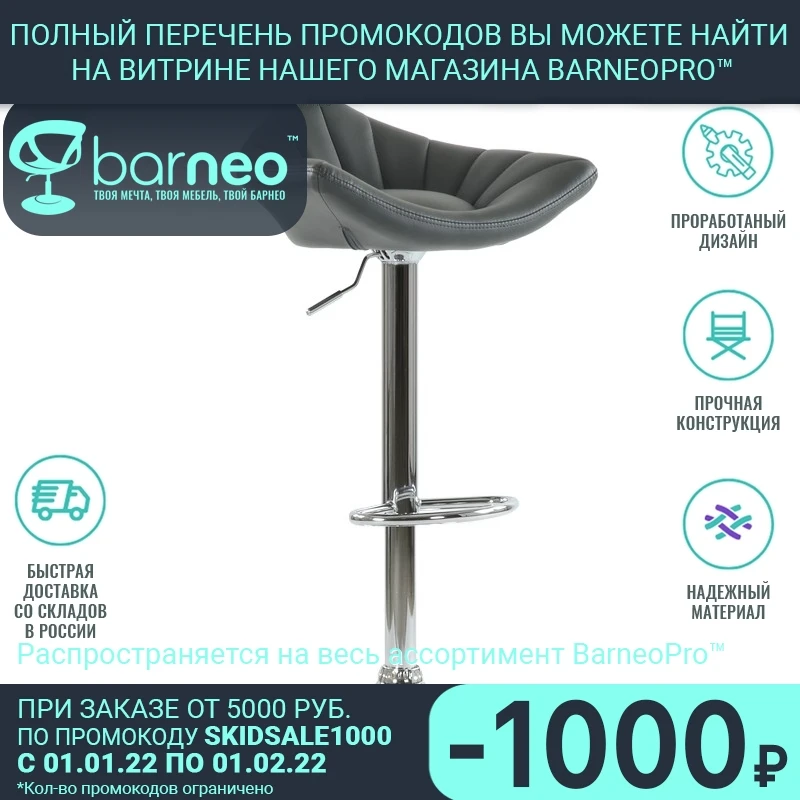 Барный стул Barneo N-44 Дана серый интерьерный дизайнерский поворотный сидение эко-кожа основание хром