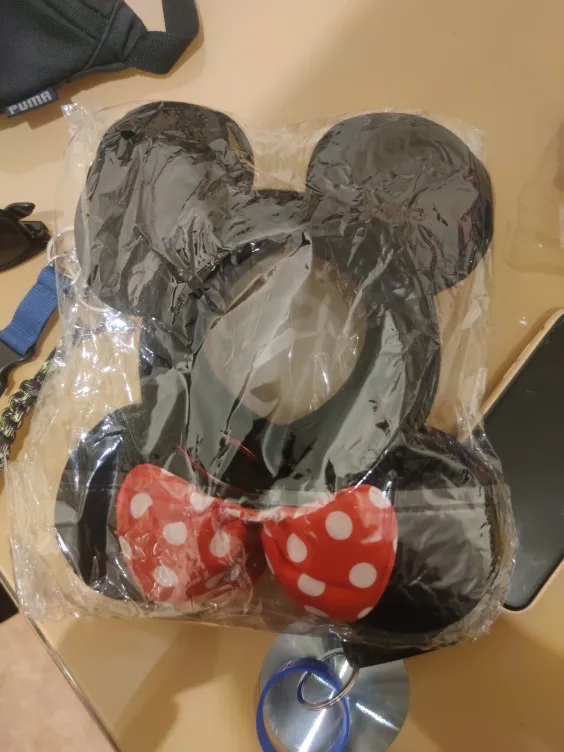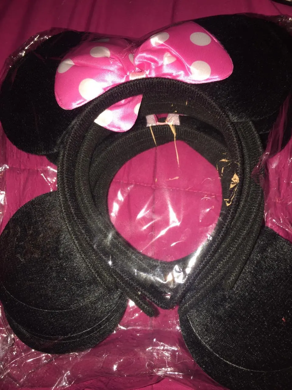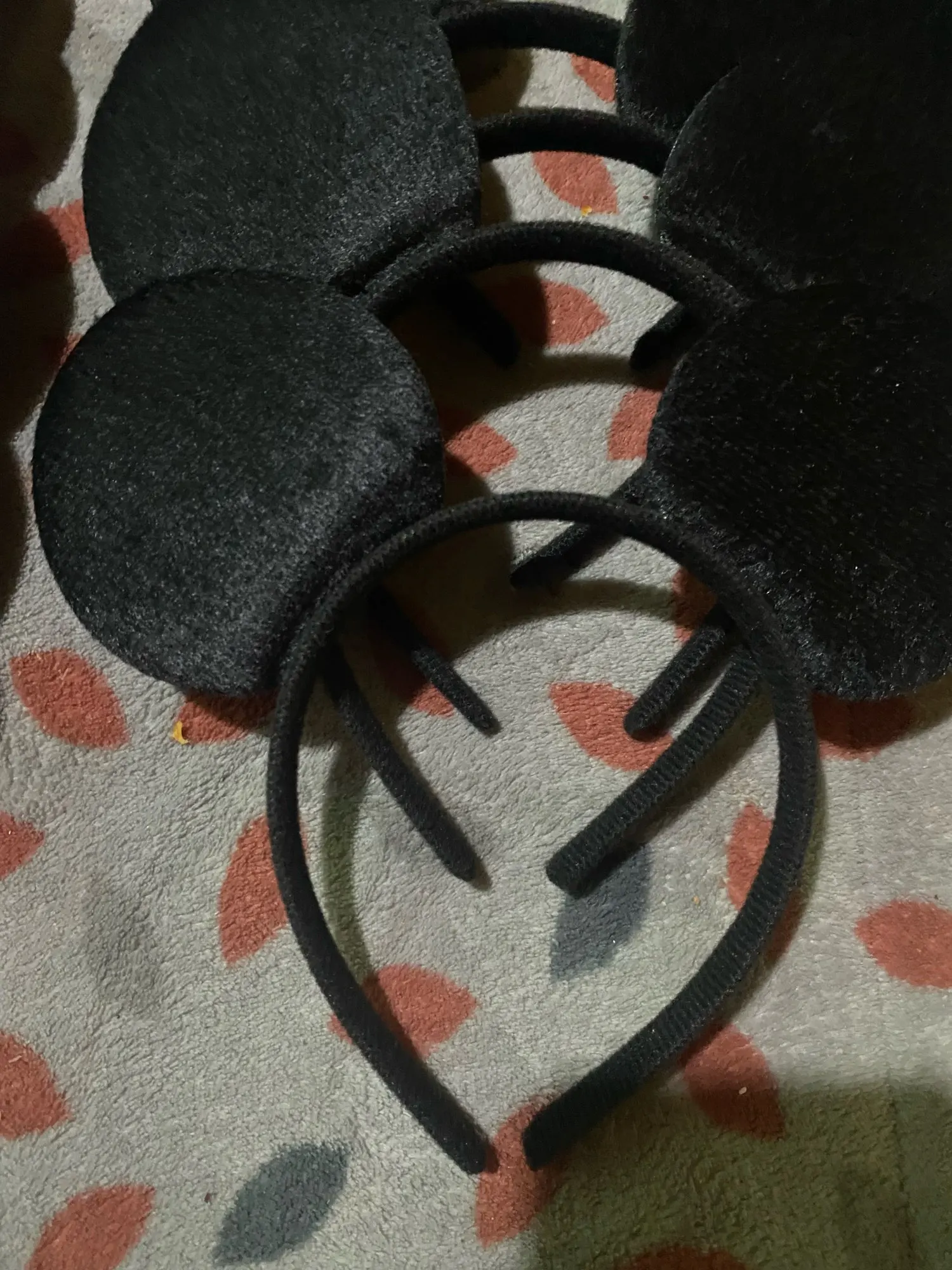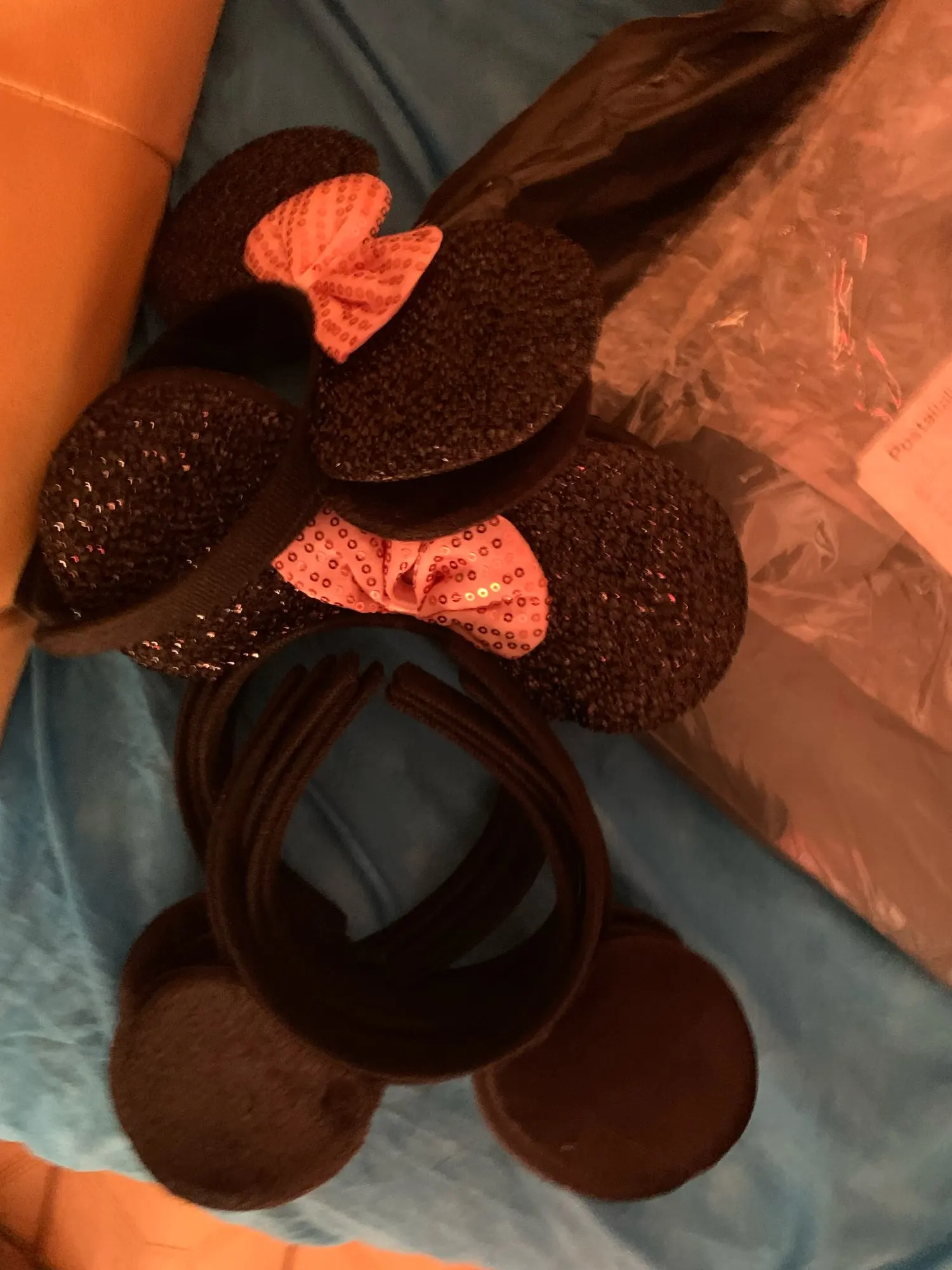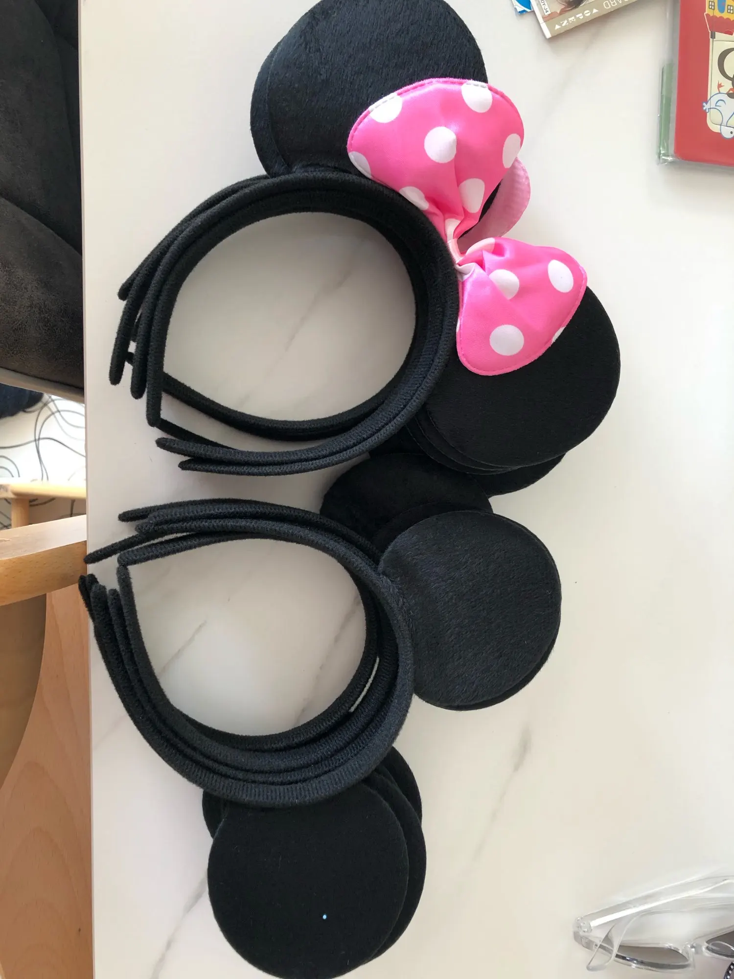 Детская алюминиевая головка с блестящими ушками мыши и блестящим бантом, как на фото. Я получил правильный цвет и количество заказанных.