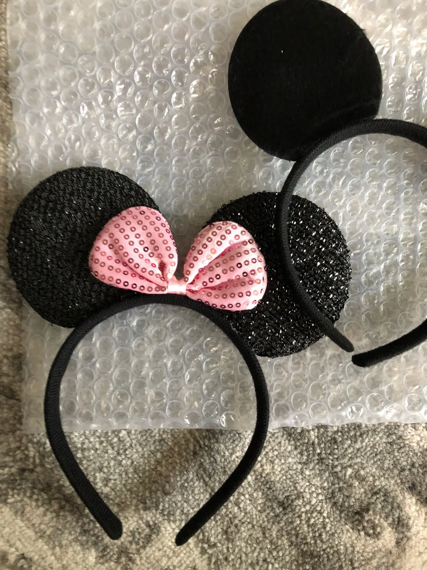 12 шт. уши Минни Маус черные блестки Розовые банданы Хэллоуин День рождения сувениры для детей мамы аксессуары для волос (6 блесток розовые 6 черные)
