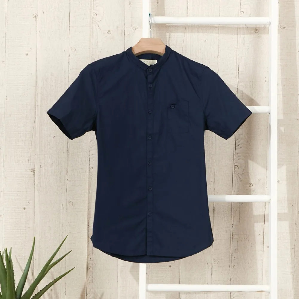 Рубашка Metersbonwe мужская с воротником-стойкой, брендовая сорочка с короткими рукавами, обычная блуза, тканая блуза
