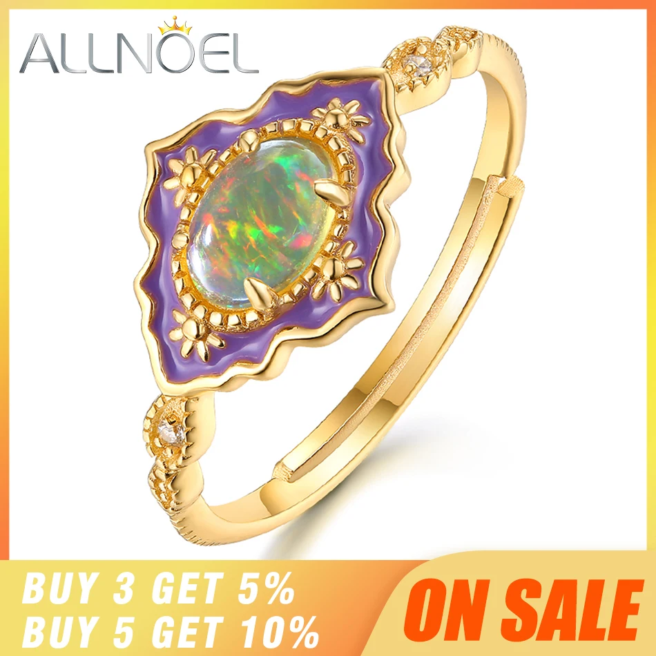 ALLNOEL , серебро 925 , ювелирное изделие, драгоценный камень, кольца женщин, Ретро стиль, настоящий натуральный огненный опал , эмаль, Радужное кольцо роскошный подарки на новый год серебро 925 ювелирные изделия
