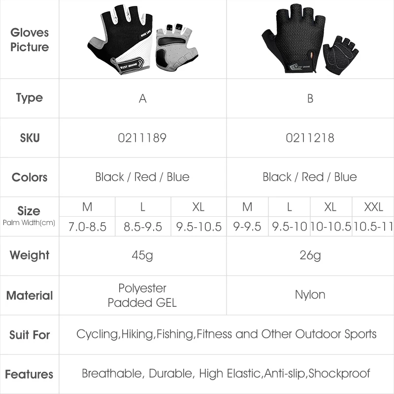 Перчатки велосипедные, летние, WEST BIKING, с полупальцами, утолщенные, для спорта, походов, горного велосипеда, мотоцикла, противоударные велосипедные перчатки