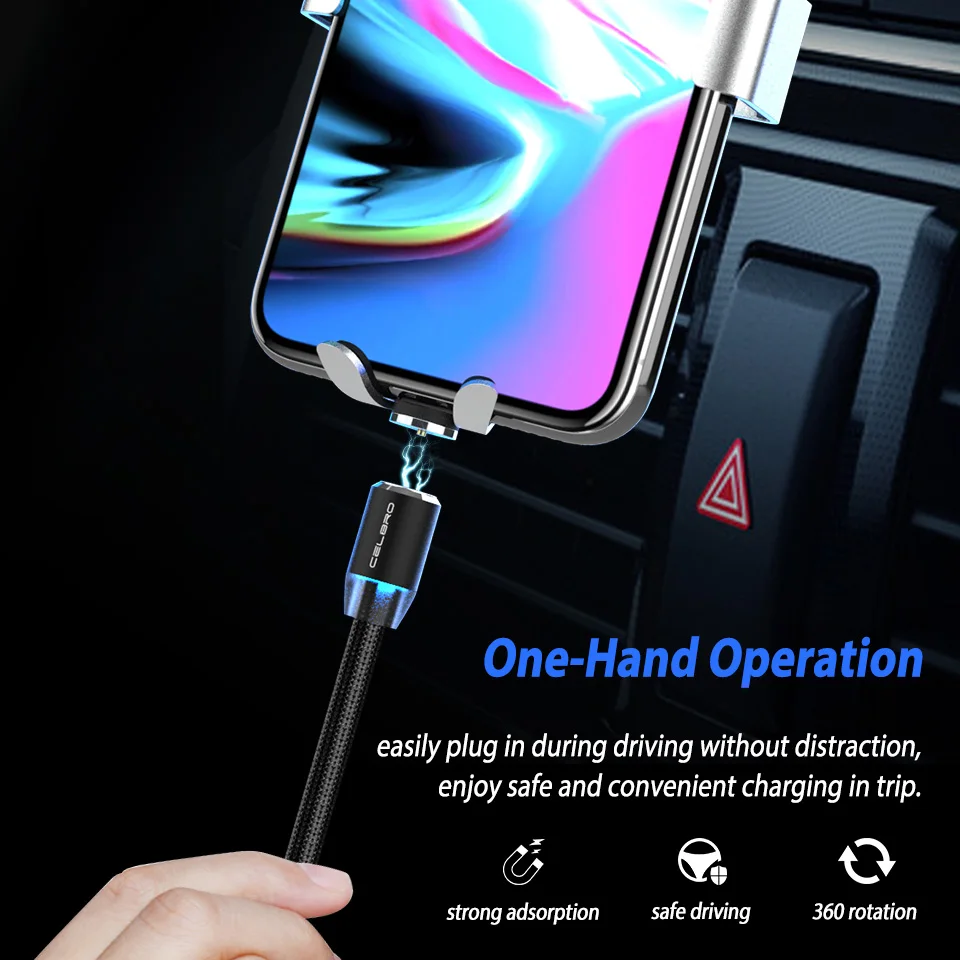 Съемный и Круглый Магнитный кабель на 360 градусов позволяет легко подключать и отключать устройство одной рукой. Это безопаснее, чем обычный кабель, особенно во время вождения.