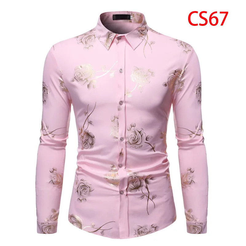 Мужские рубашки с золотым Розовым цветочным принтом, брендовые цветочные рубашки в стиле стимпанк, белая сорочка с длинным рукавом для свадебной вечеринки, Bronzing Camisa Masculina