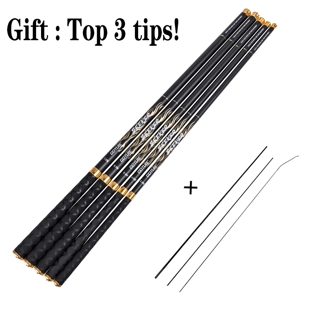 Телескопическая удочка Goture Seeker из углеродного волокна, 24 т, 1,8-7,2 м, для ловли карпа, устройство подачи стержней, ручная удочка, рыболовные снасти