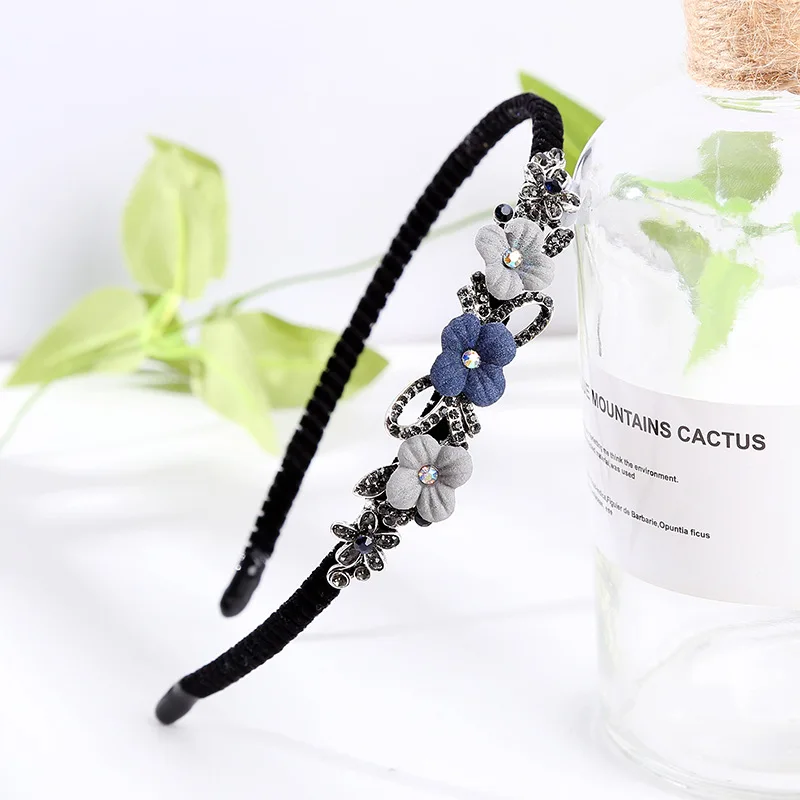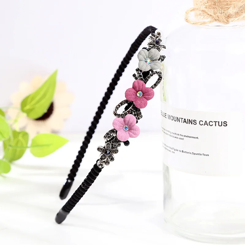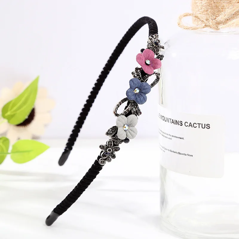 Ободок для волос Женский, корейский стиль, противоскользящий, с цветами, стразы