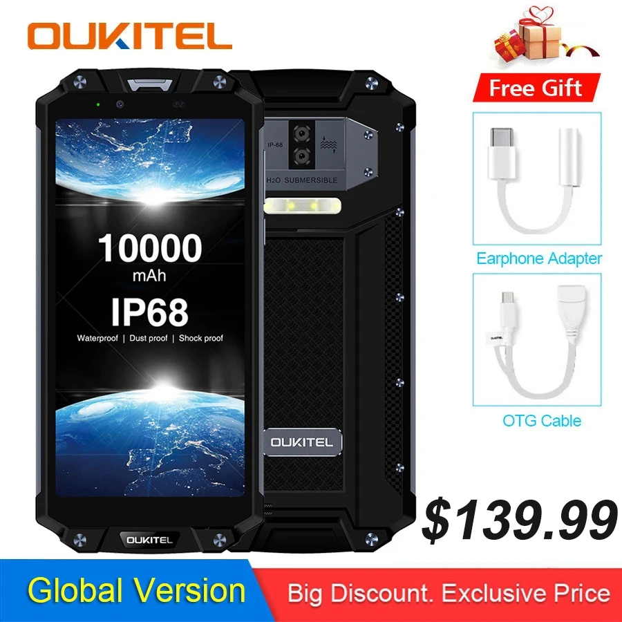 Ударопрочный смартфон OUKITEL WP2, 4 ГБ+64 ГБ, MT6750T восемь ядер, 6-дюймовый дисплей 18:9, 10000 мАч, сканер отпечатков пальцев, водозащита IP68, пылезащищенный мобильный телефон