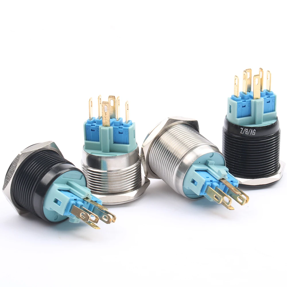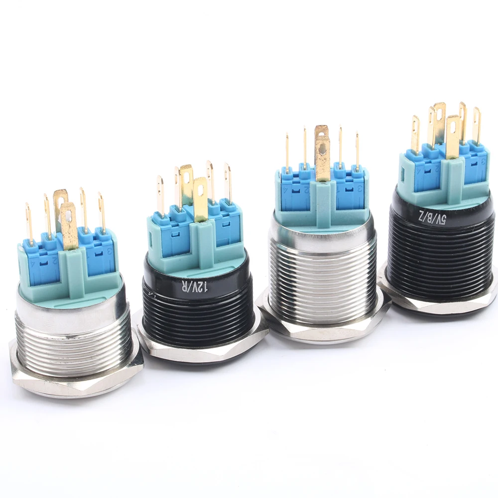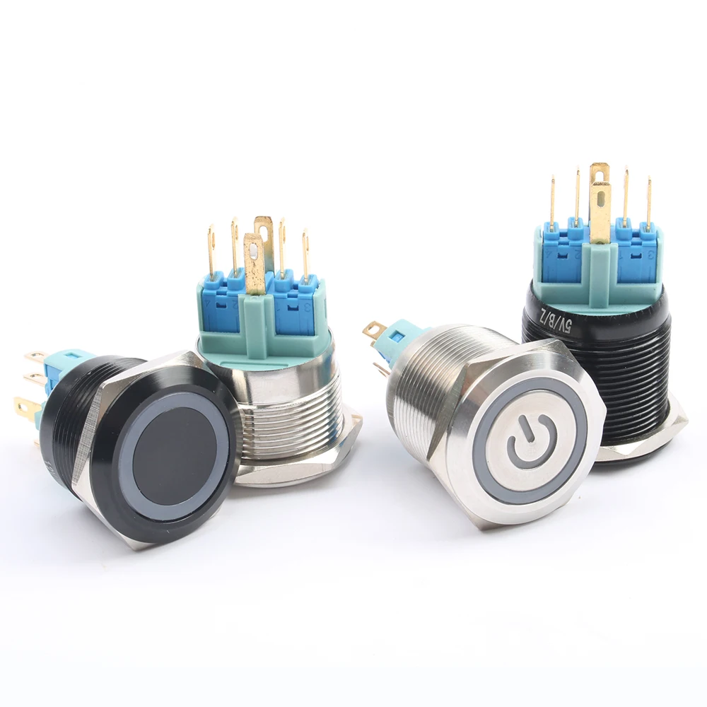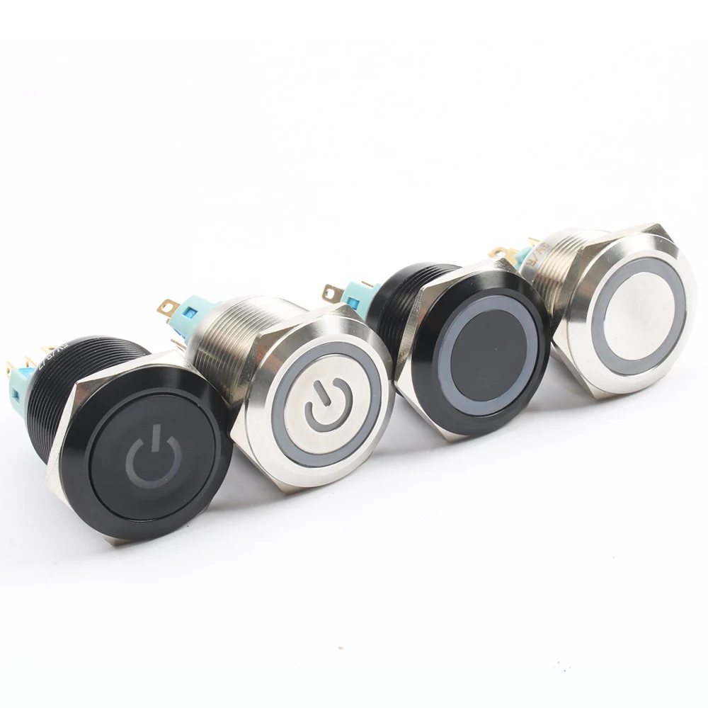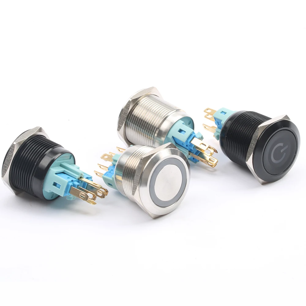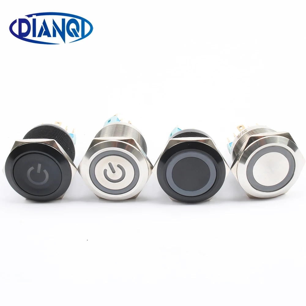 DIANQI 22 мм водонепроницаемый металлический кнопочный переключатель со светодиодный светильник кой Красный Синий Зеленый Желтый самоблокирующийся и мгновенный