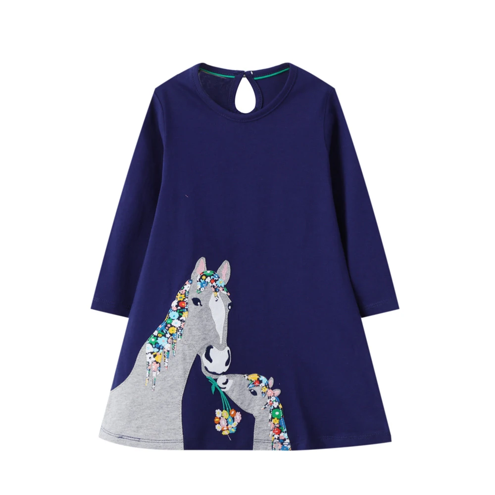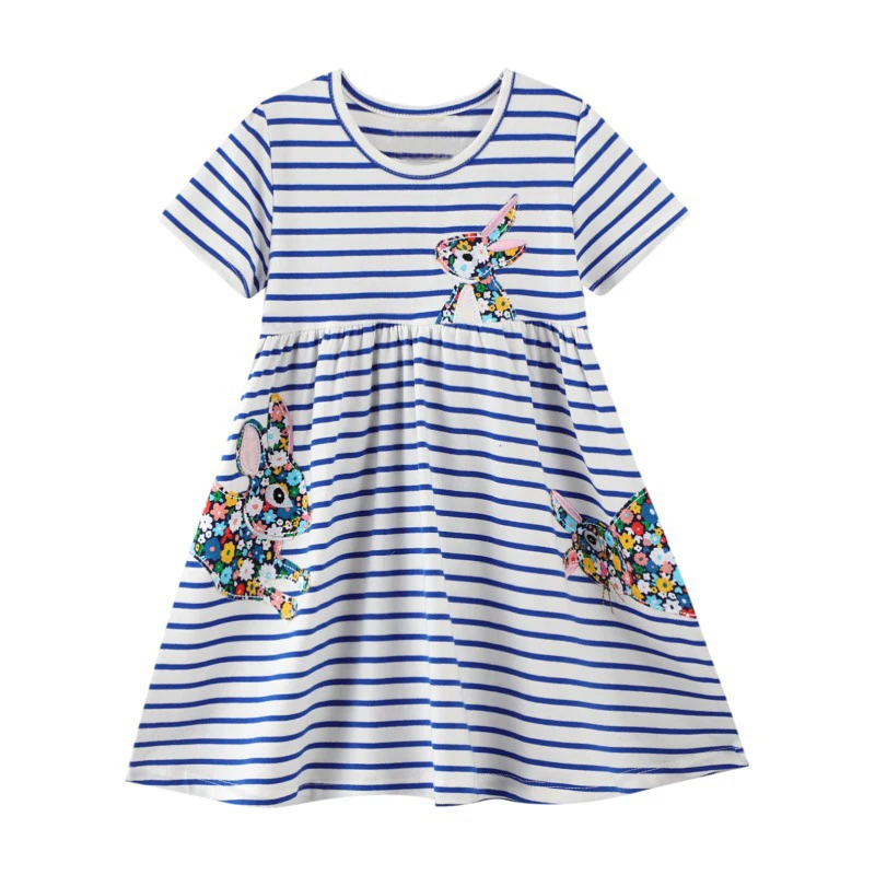 Платье для девочек, хлопковечерние, в полоску, с аппликацией в виде животных, с единорога, От 2 до 7 лет