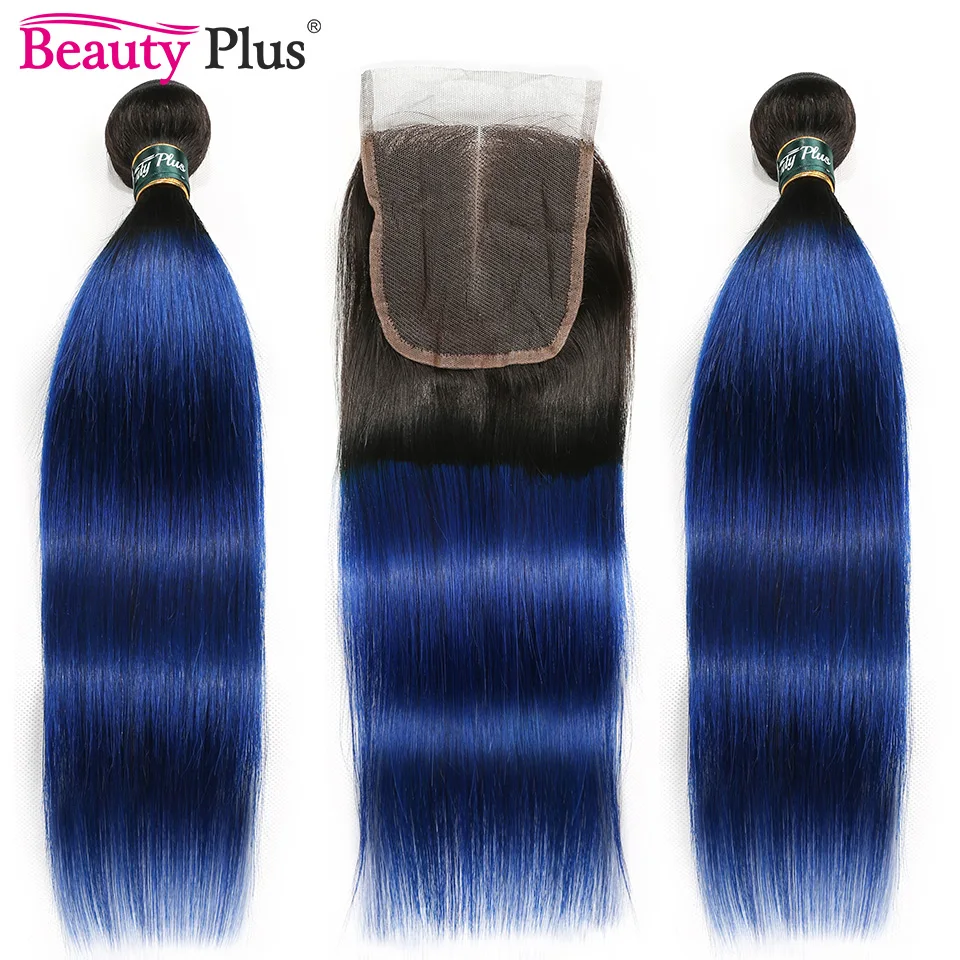 Омбре пряди с закрытием перуанские прямые человеческие волосы плетение красота плюс Реми синий зеленый розовый блонд 2 пряди с закрытием