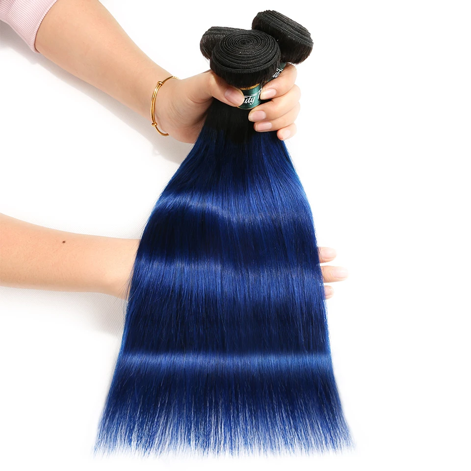 Hair ColorDark Roots 2 Tone 1B Blue Ombre Hair Bundles With Closure