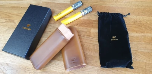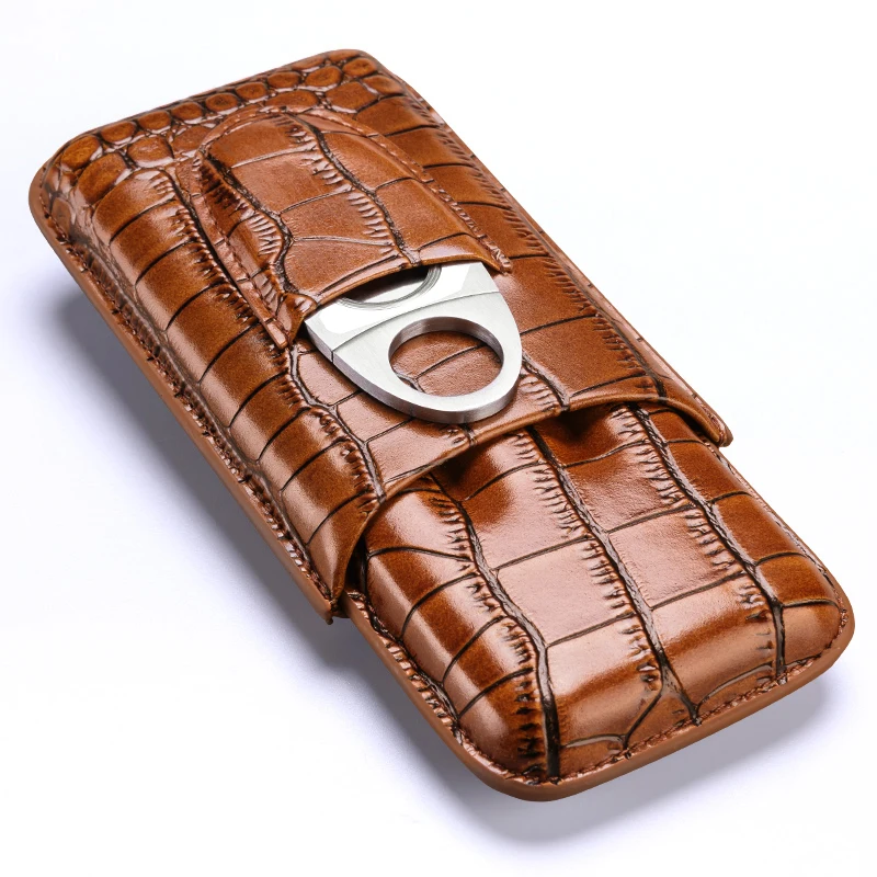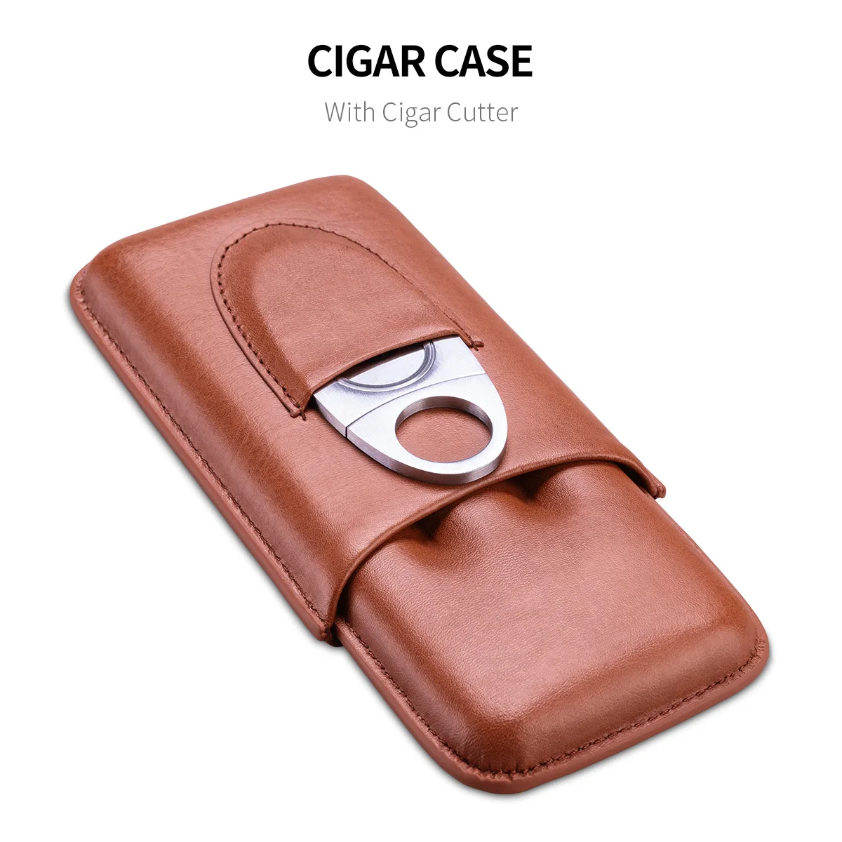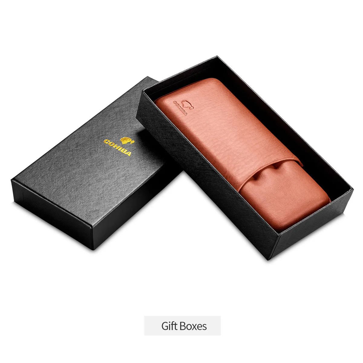 Портативный чехол для сигар COHIBA, кожаный футляр для сигар с 3 трубками, дорожный мини-хьюмидор с отделением для сигар и подарочной коробкой
