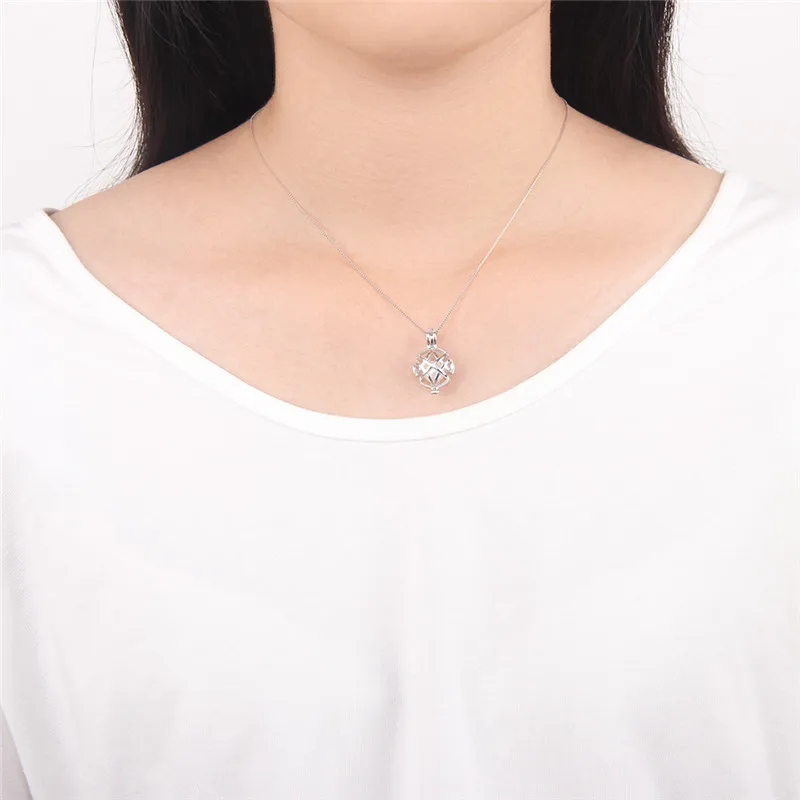 CLUCI, 3 шт., 925 пробы, серебряный, женский кулон в форме клетки, круглый шар, спортивный кулон, полое серебро 925 пробы, подвеска с жемчугом SC327SB