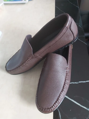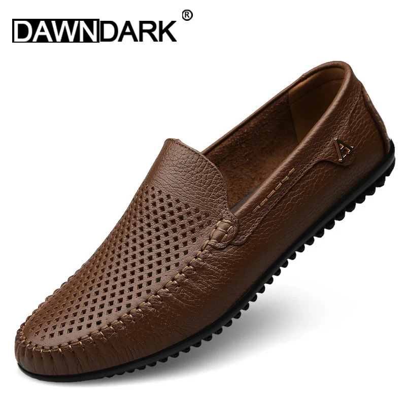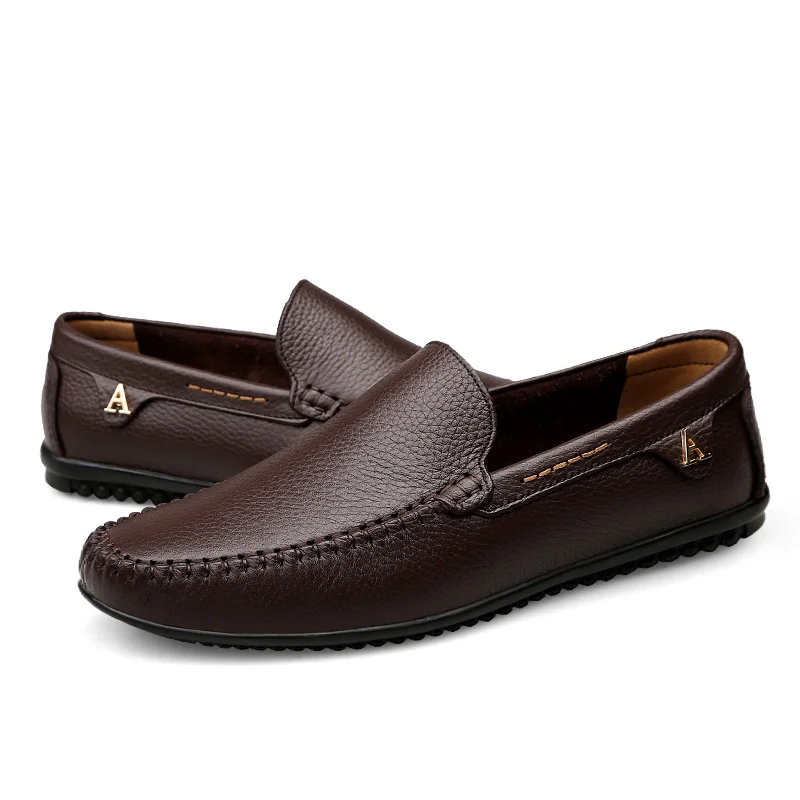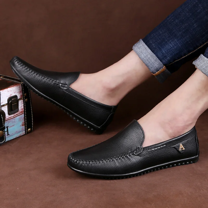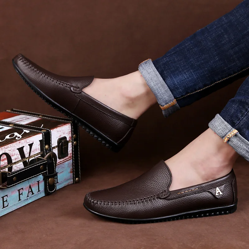 Мужские повседневные туфли, кожаные лоферы, удобные, без застежки, на плоской подошве, для вождения, цвет коричневыйчерный