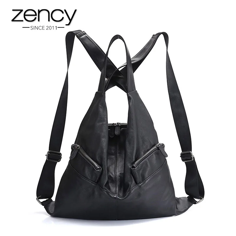 Женский рюкзак Zency из 100% натуральной воловьей кожи, модная дорожная черная дамская сумка, школьный ранец для ноутбука