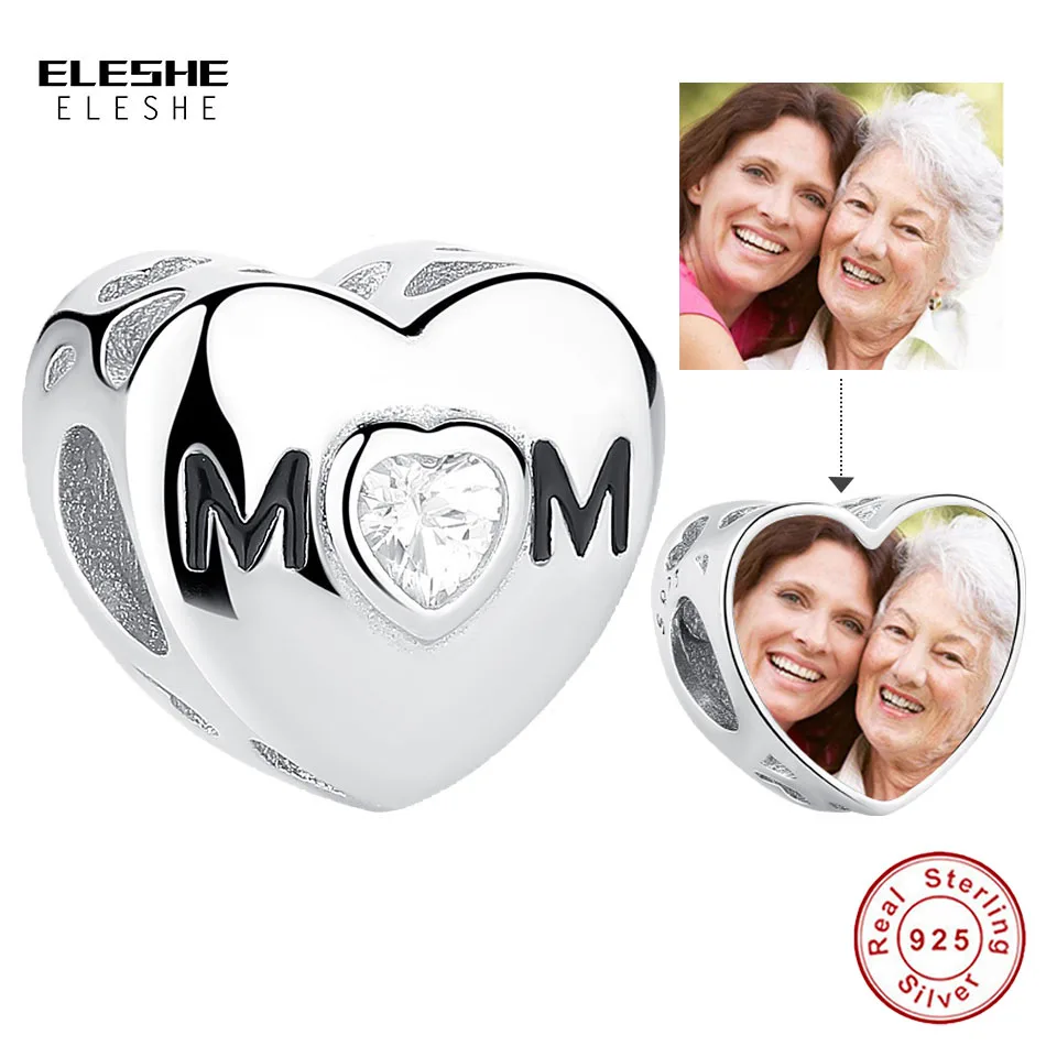 ELESHE, хороший подарок на день матери, 925 пробы серебро, мама сердцем на заказ Фото Подвески из бисера Браслет Fit Сделай Сам, ювелирное изделие
