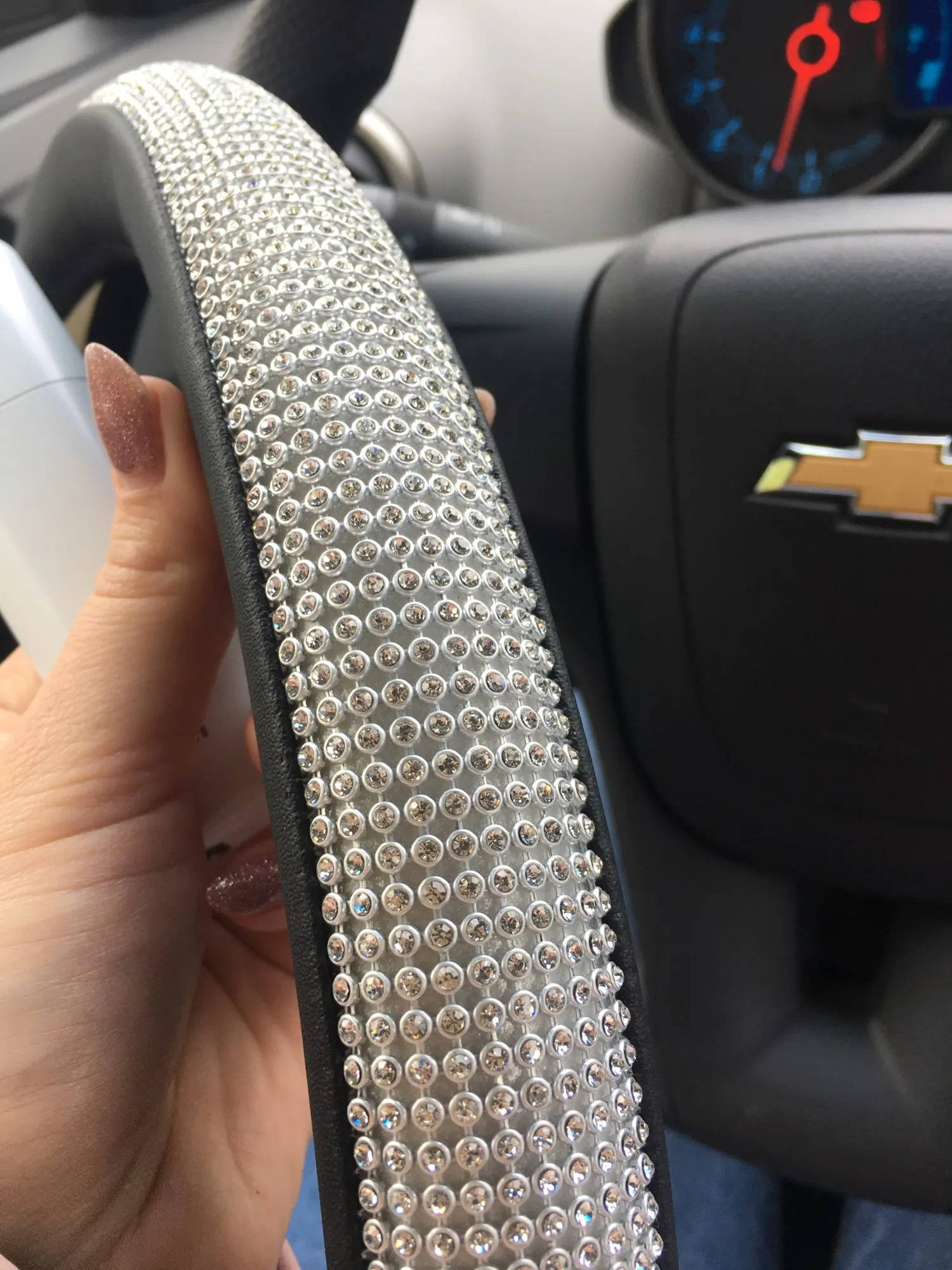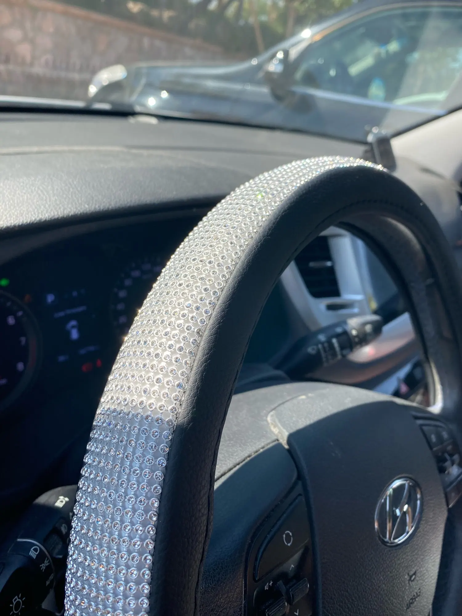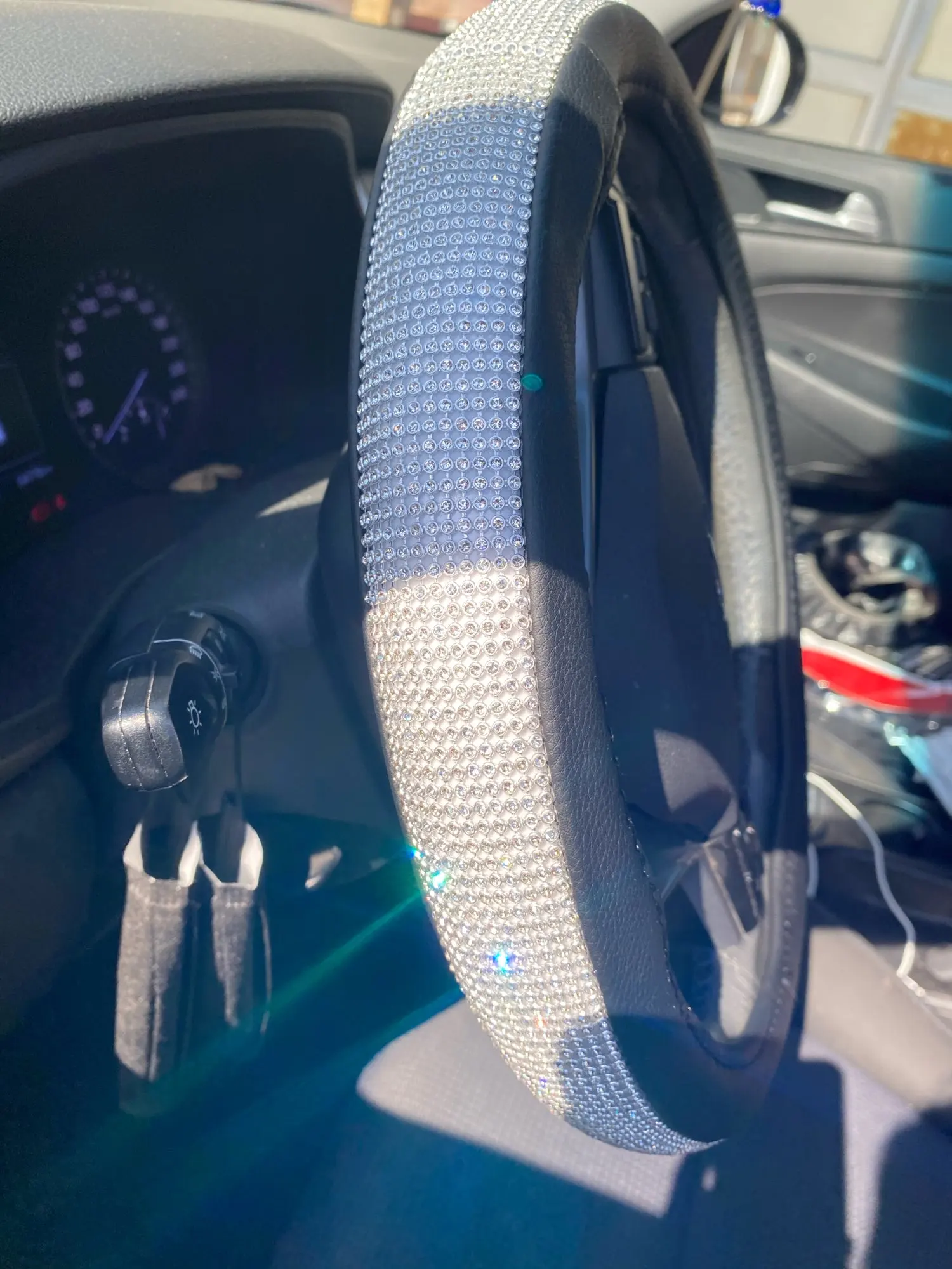 Оплетка на руль AUTOYOUTH, универсальная 15-дюймовая оплетка Стразы со стразами, цвет черный, серебристый