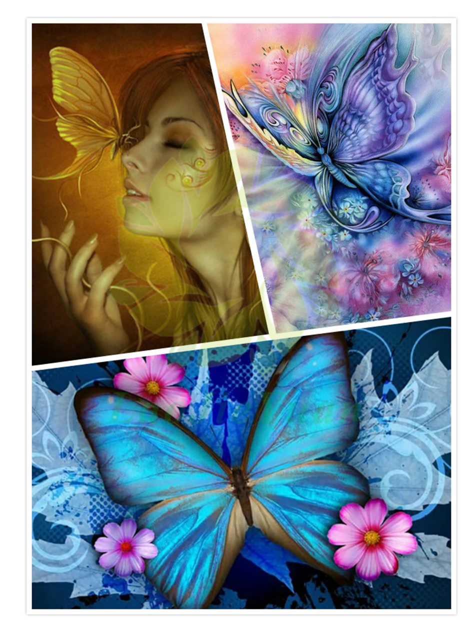 Алмазная картина бабочки, цветы, животные, Набор для вышивки крестом, квадратные Стразы