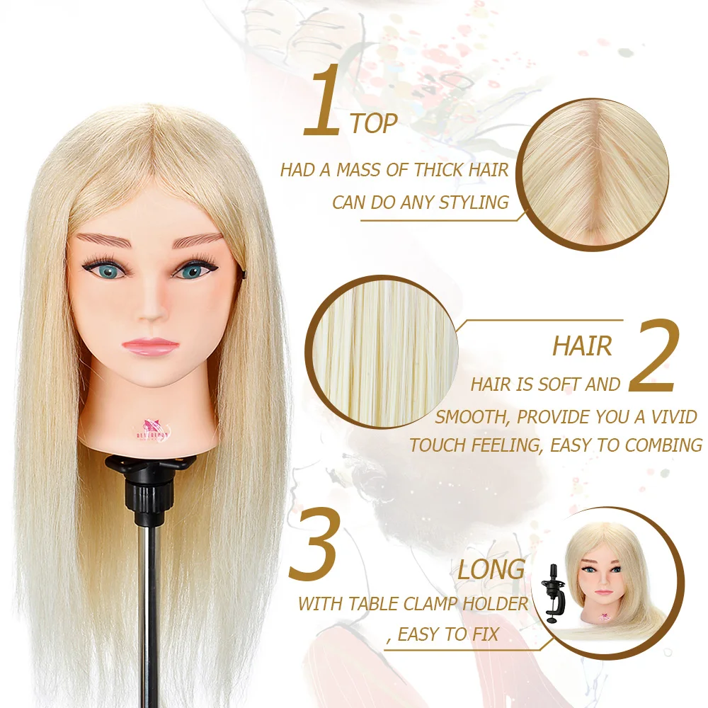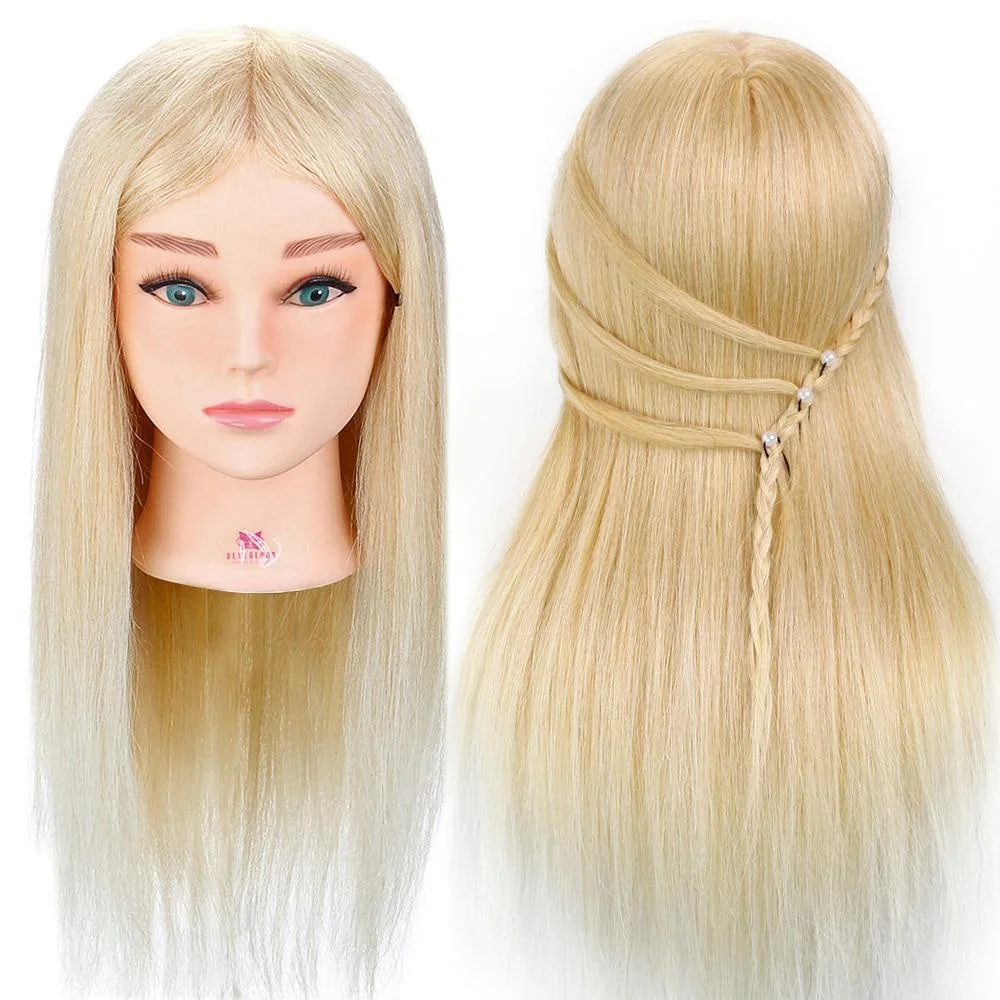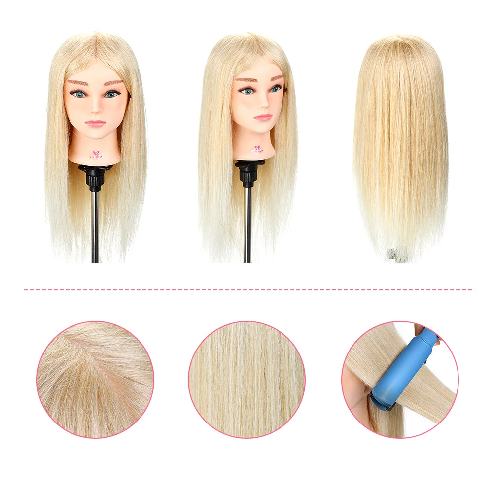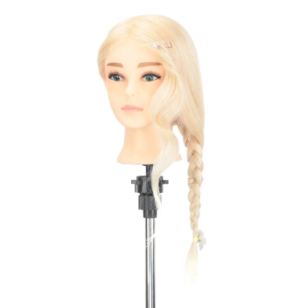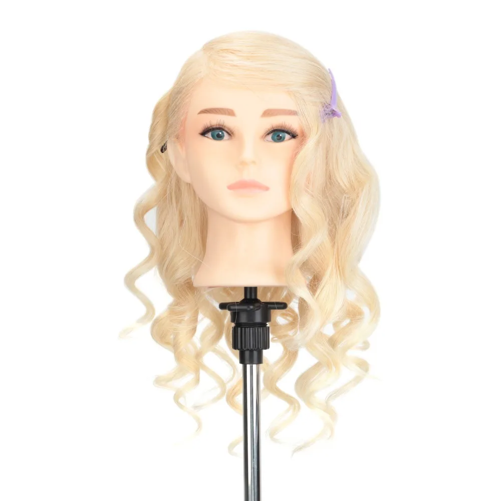 Голова манекена для парикмахерской, 100% натуральные человеческие волосы для причесок, Парикмахерская, тренировочная голова для завивки с подставкой