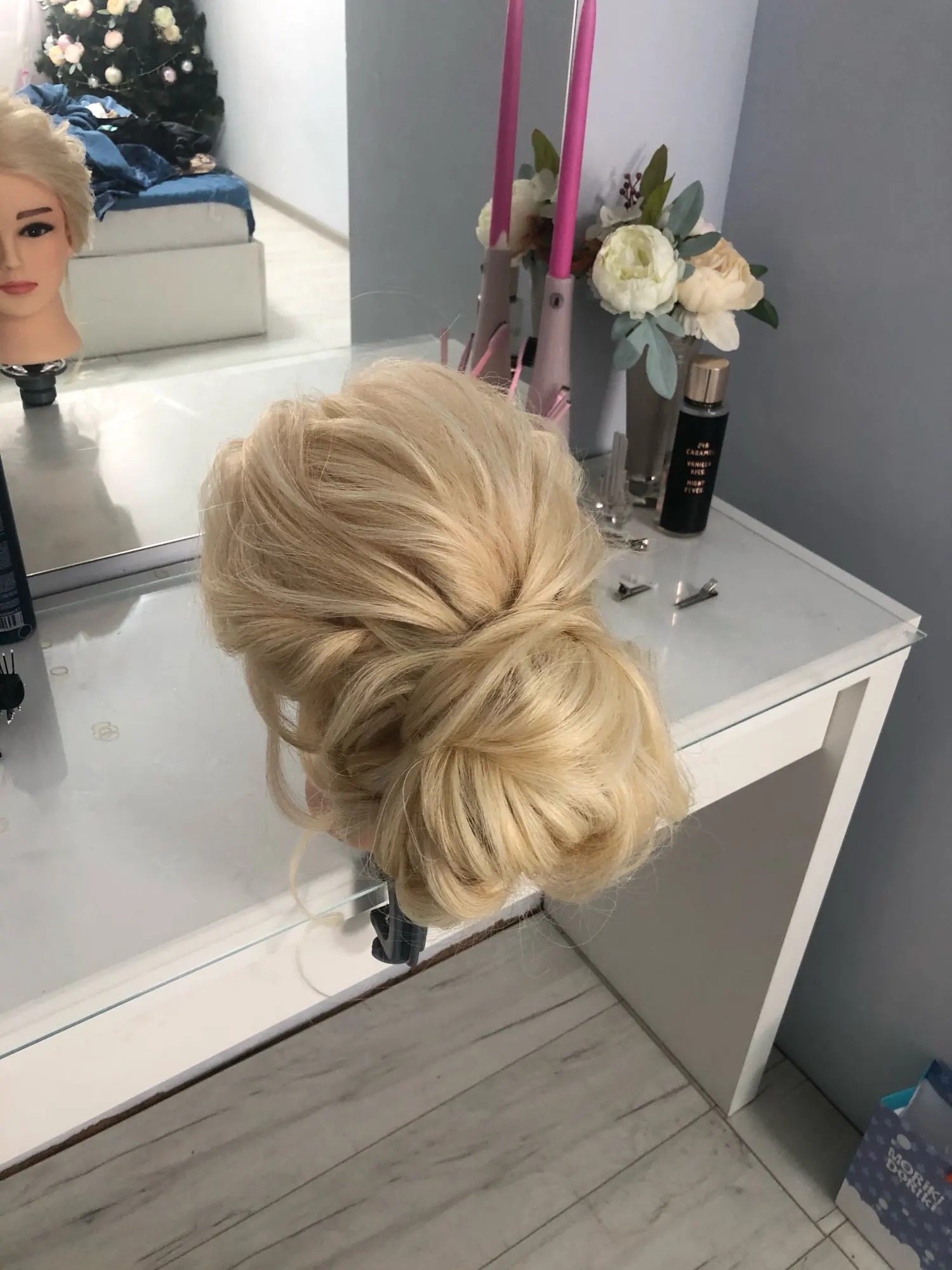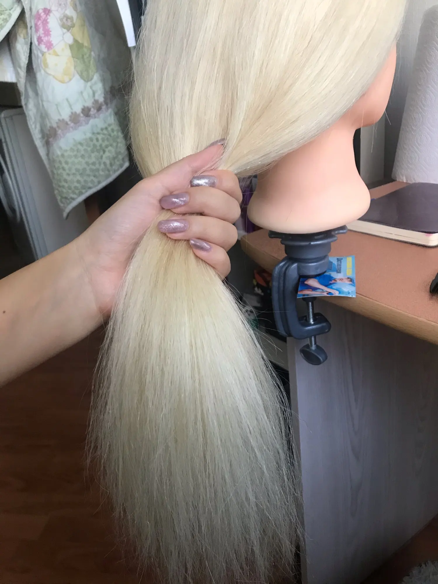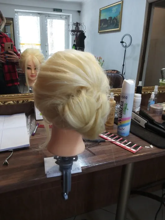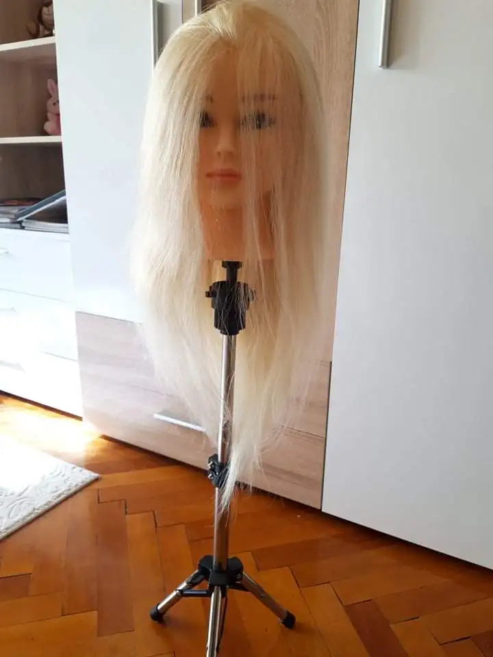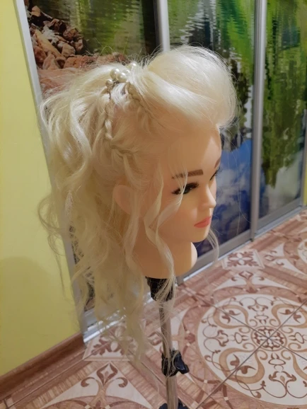 Классная голова. Назвала Сюзанной. Крутится на 160 градусов. Волосы жесткие. Помыла с кондиционером TSUBAKI, стали мягкие. Очень довольна. Если научиться делать на ней прически, то на человеческих волосах будет проще простого. С четвёртого раза получилась голливудская волна))) отзывы дополню. При расчесывании иногда волосы выпадают, но это не критично.