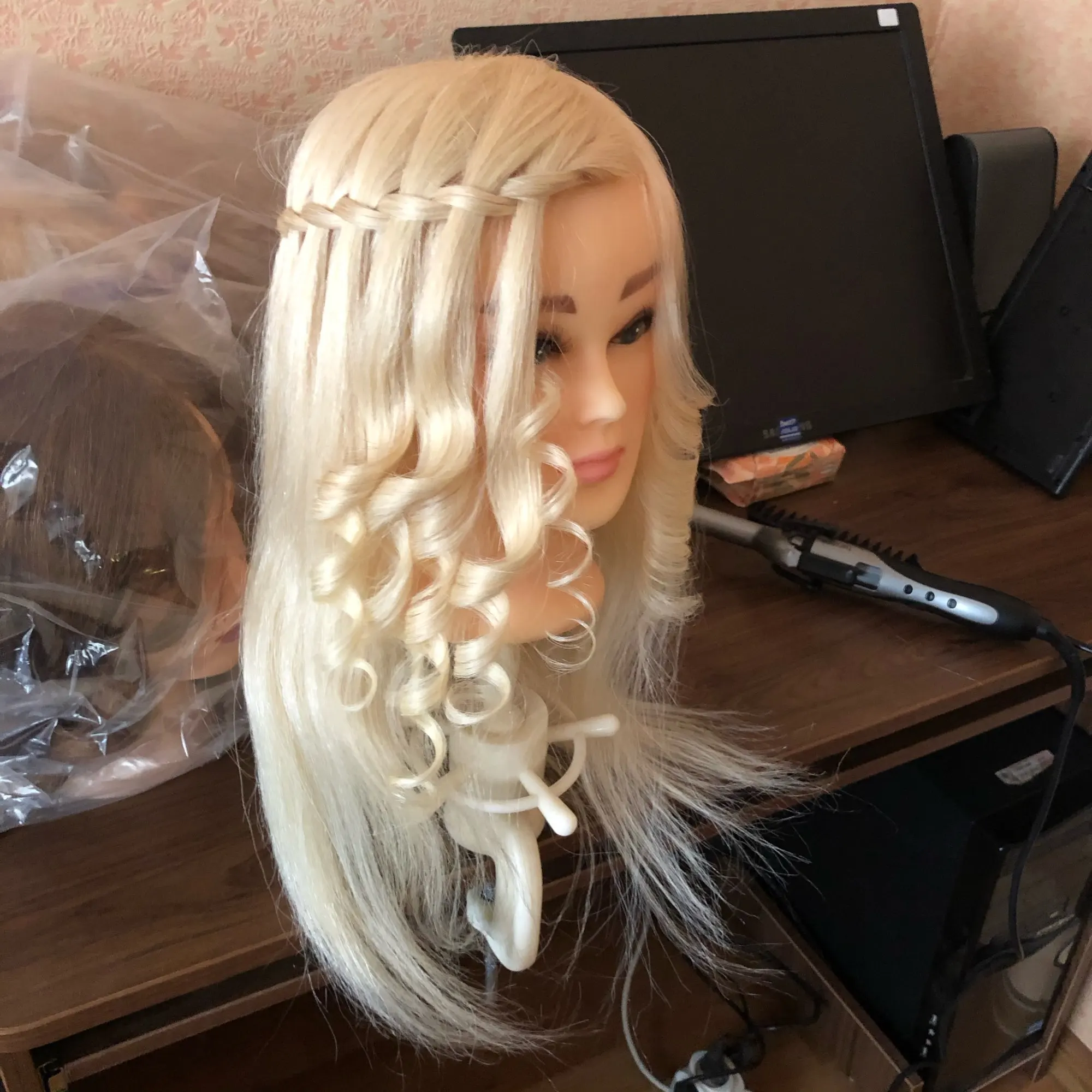 отличный маникен!! завивается, не линяет. завивала при 200C* не плавится. быстрая доставка прям до дома курьером