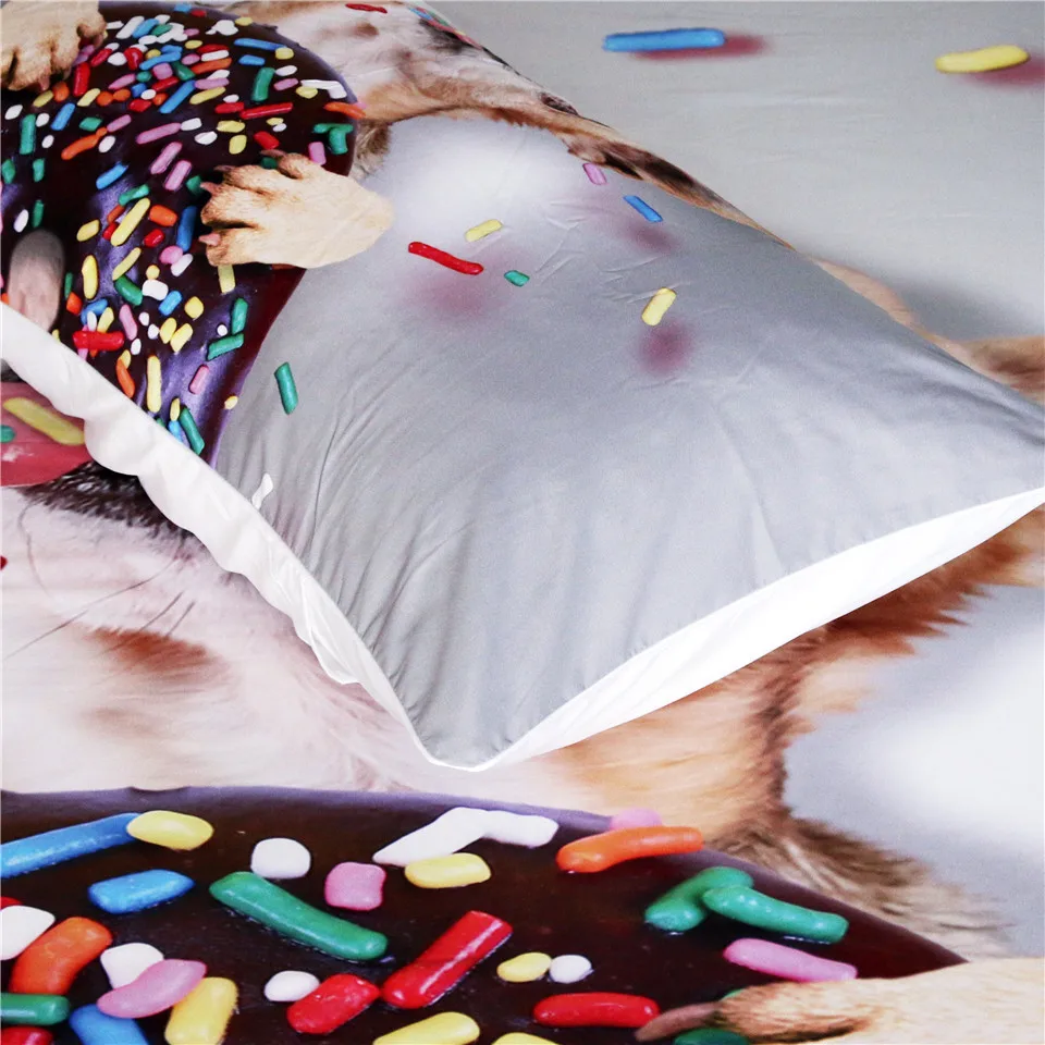 Постельное белье BeddingOutlet с 3D рисунком собаки, набор с пододеяльником и пончиком для детей, взрослых, домашний текстиль, 3 предмета, яркие цвета