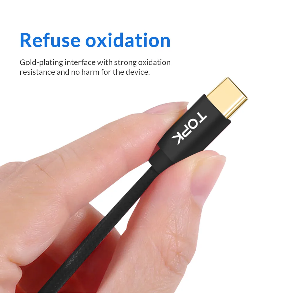 Нейлоновый кабель TOPK USB C для быстрой зарядки, кабель type C для samsung Galaxy S9 S8 Note 9 8 Xiaomi, кабель для синхронизации данных type-C