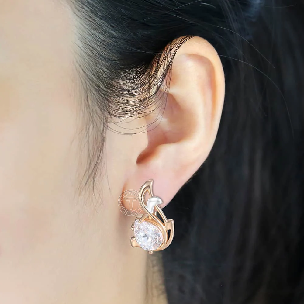 Серьги из кубического циркония для женщин и девочек, 585, розовое золото , CZ, вихревые формы, женские серьги , оптовая продажа, ювелирные изделия, подарки для женщин KGE98