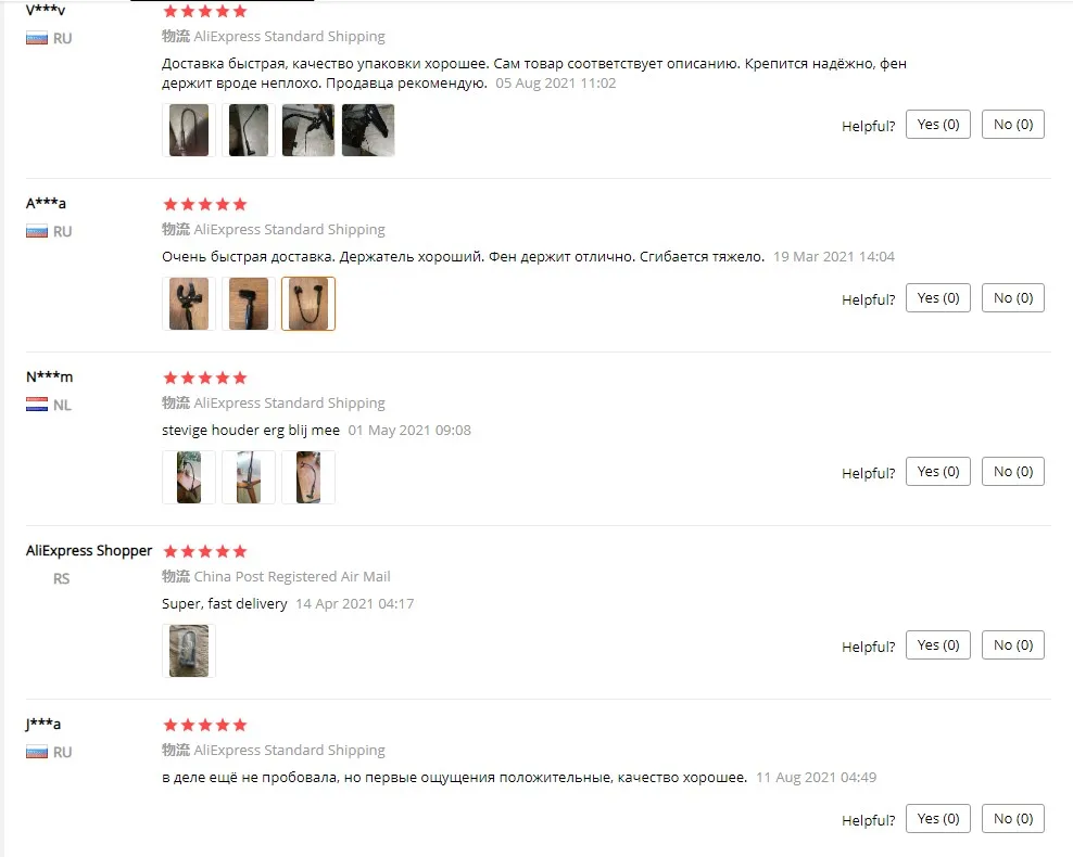 Очень довольна заказом. Уже опробовали. Держатель прочный, держит фен отлично. Номер трека отслеживаться, 26.11 заказала, получила 29.12.