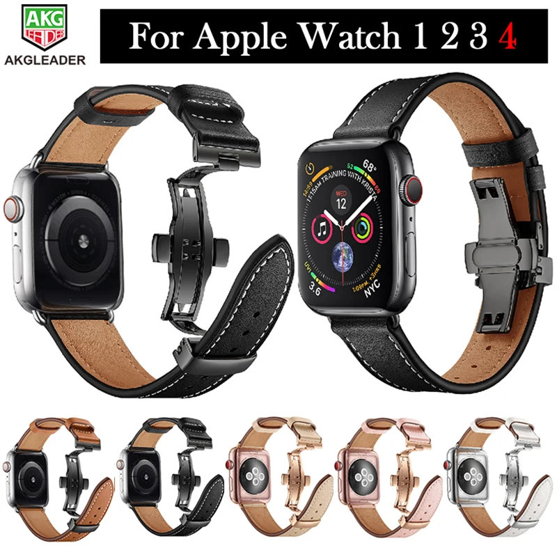 Ремешок для часов Apple iWatch, из натуральной кожи, с пряжкой-бабочкой, для Apple Watch 1, 2, 3, 4, 38 мм, 42 мм, 40 мм, 44 мм
