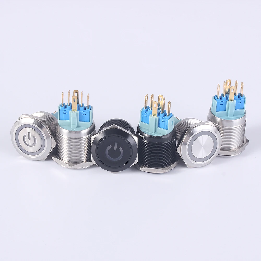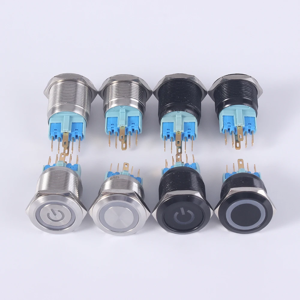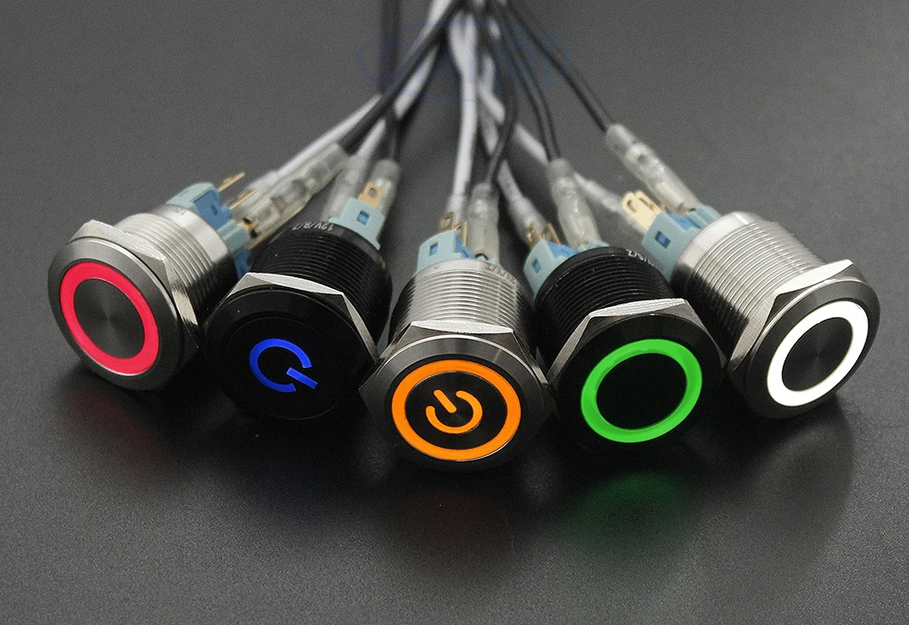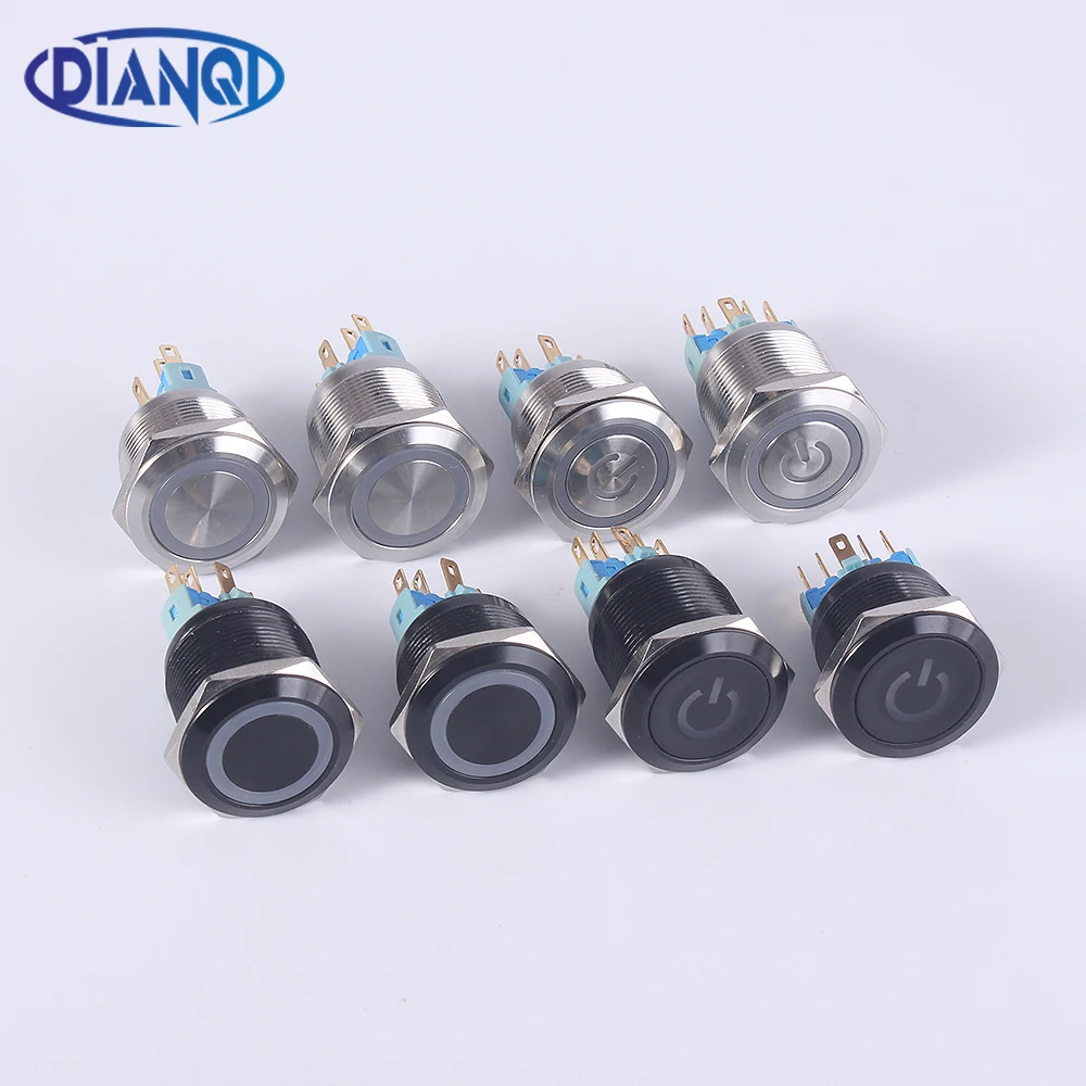 Металлический водонепроницаемый кнопочный переключатель со светодиодный светильник кой, красного, синего, зеленого, желтого цвета, 22 мм