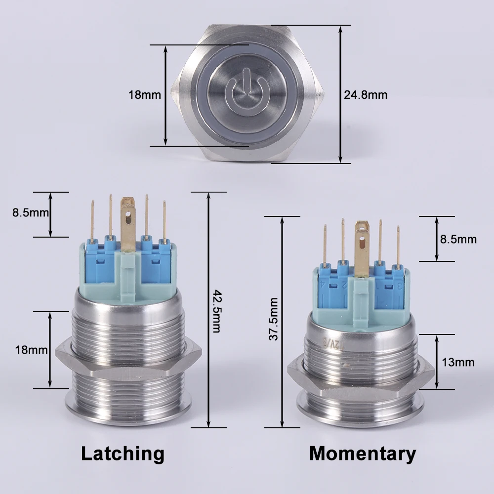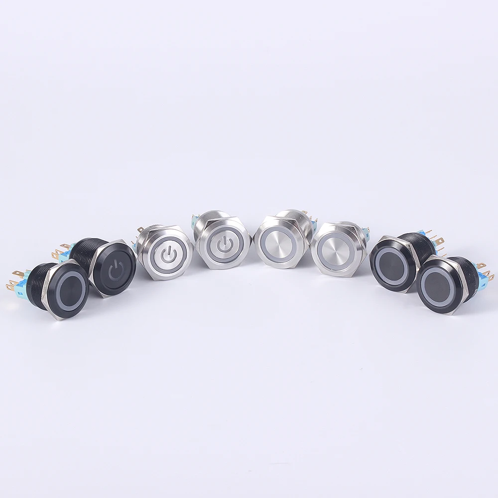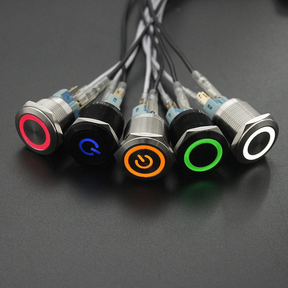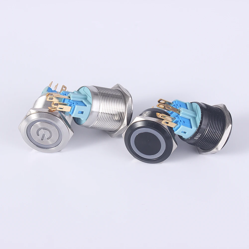Металлический водонепроницаемый кнопочный переключатель со светодиодный светильник кой, красного, синего, зеленого, желтого цвета, 22 мм