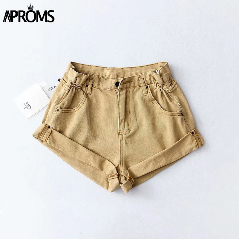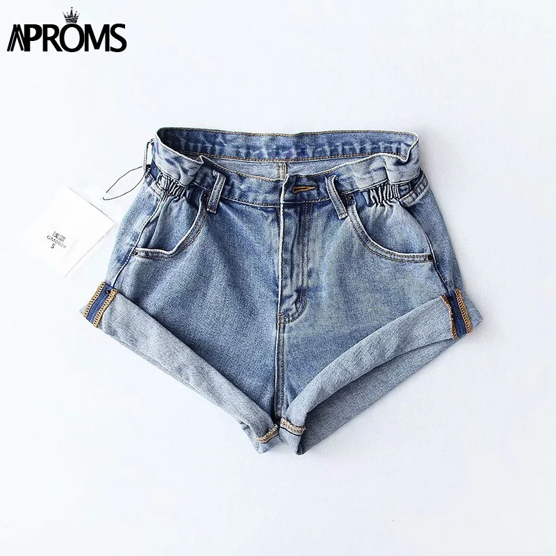 Женские джинсовые шорты Aproms, голубые повседневные облегающие шорты с высокой талией, на пуговицах, с карманами, летняя пляжная уличная одежда, 2021